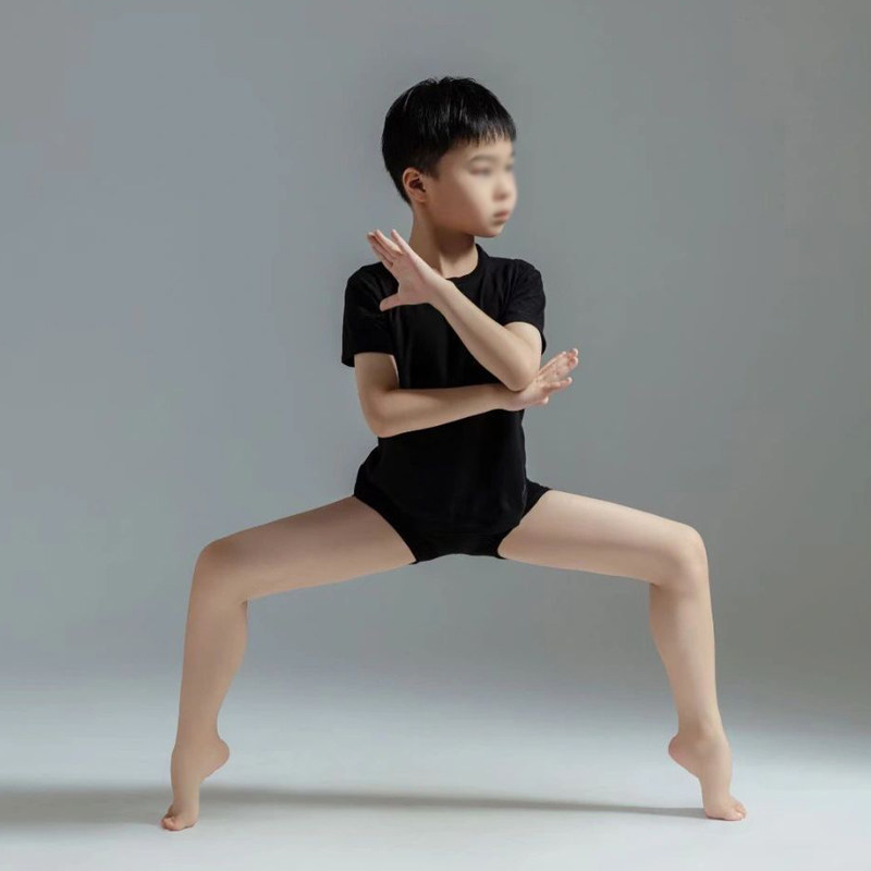 儿童舞蹈服男童训练练功服长袖中国舞拉丁舞服短裤白色男生形体服