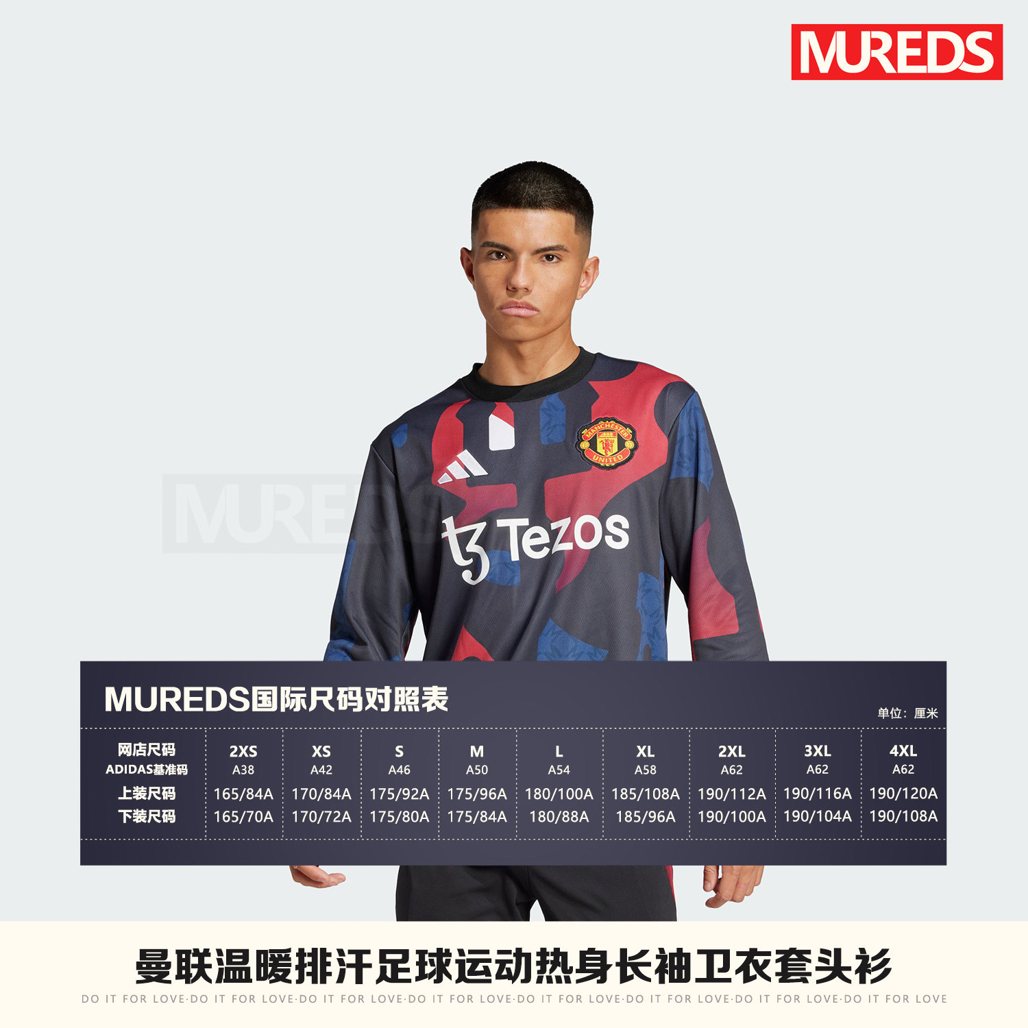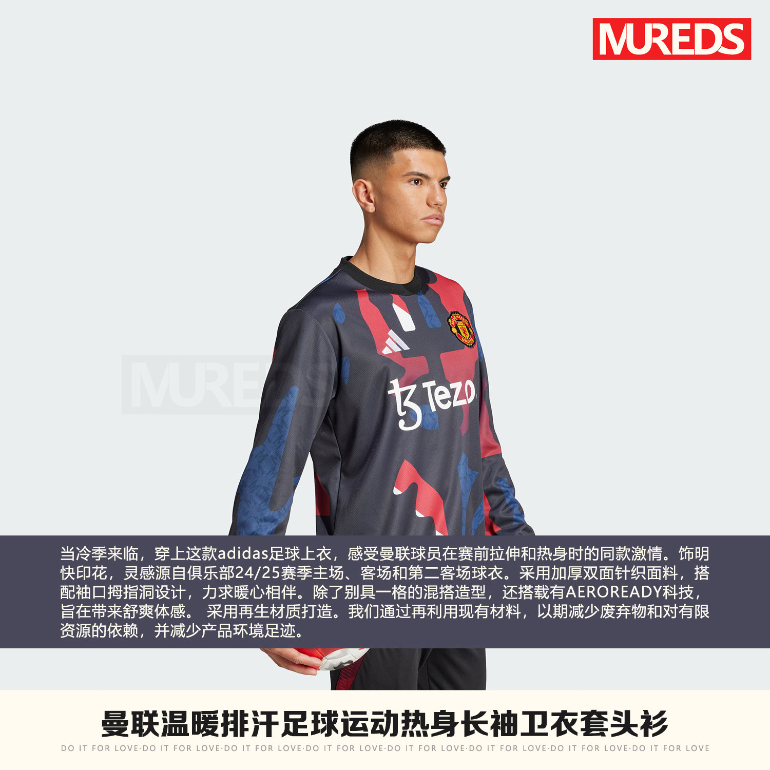 曼联官方正品阿迪达斯足球运动赛前保暖热身长袖训练服球衣JD7145