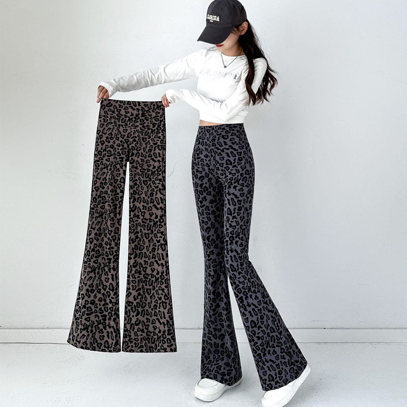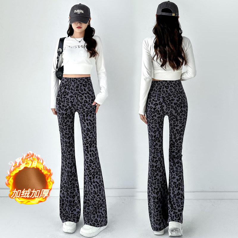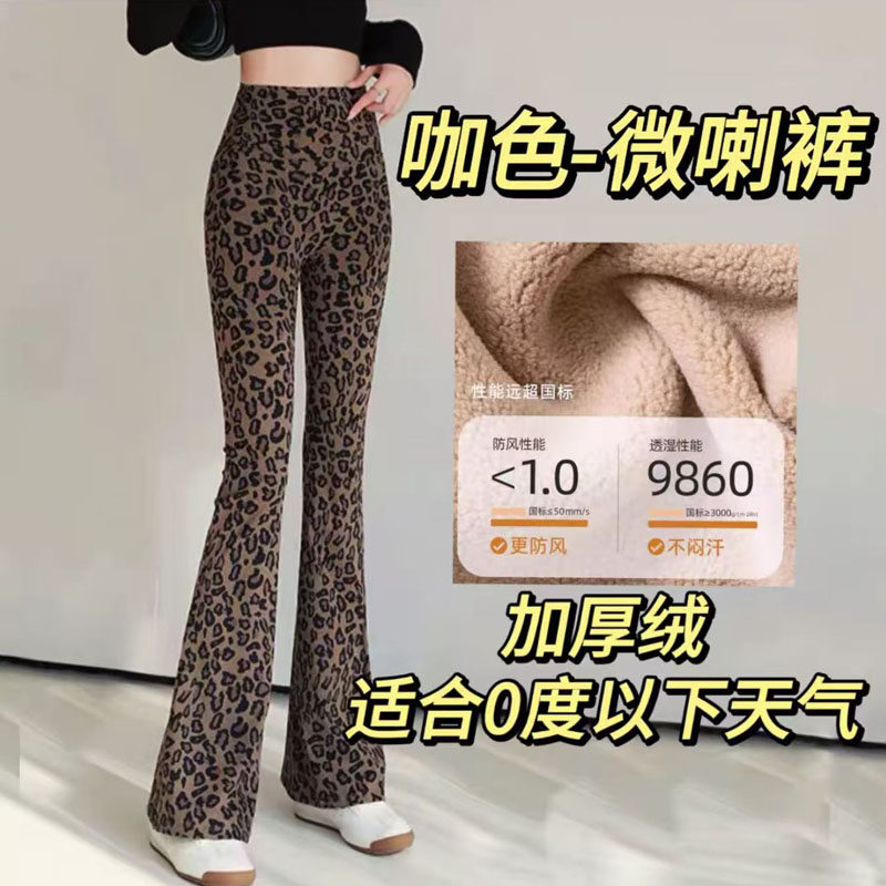 加绒加厚豹纹微喇鲨鱼裤女外穿秋冬高腰显瘦马蹄裤阔腿瑜伽喇叭裤