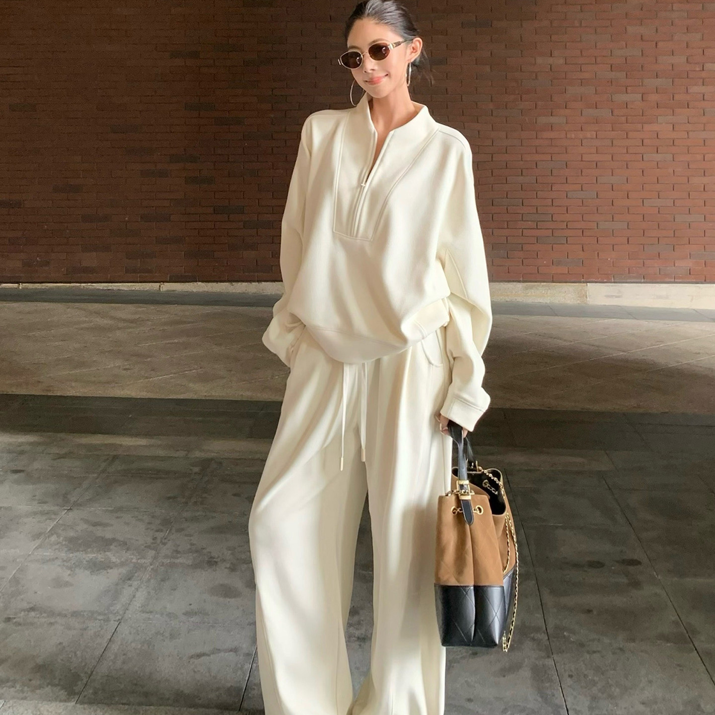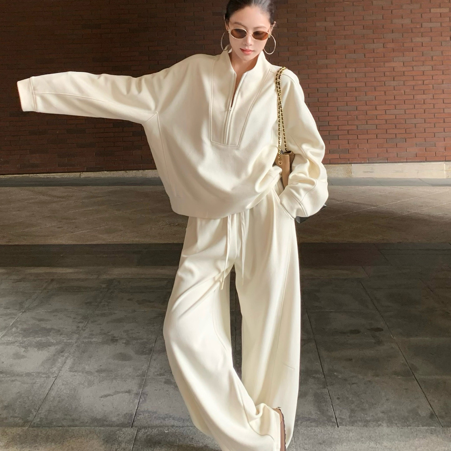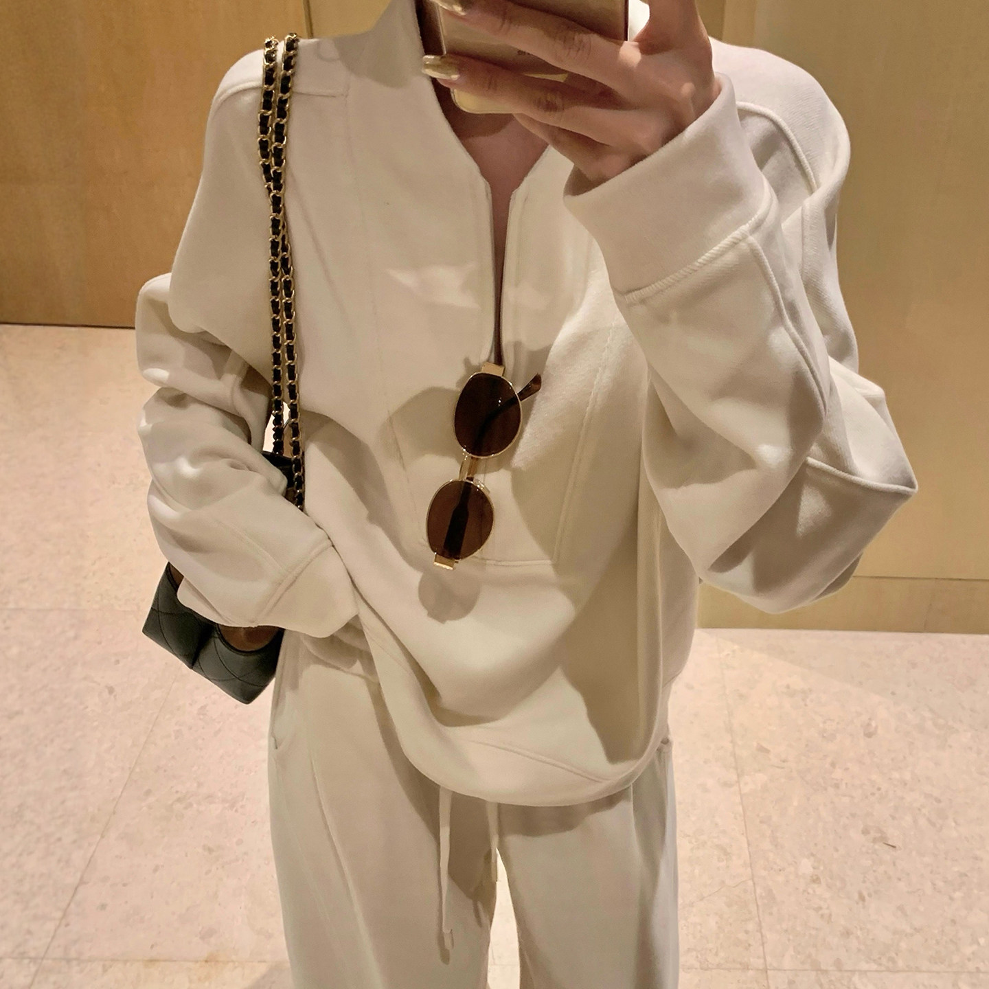 高级感运动套装女秋冬季新款宽松韩版加绒加厚卫衣阔腿长裤两件套