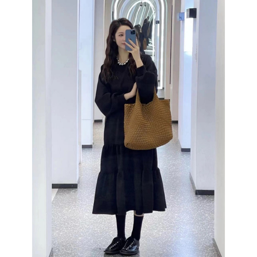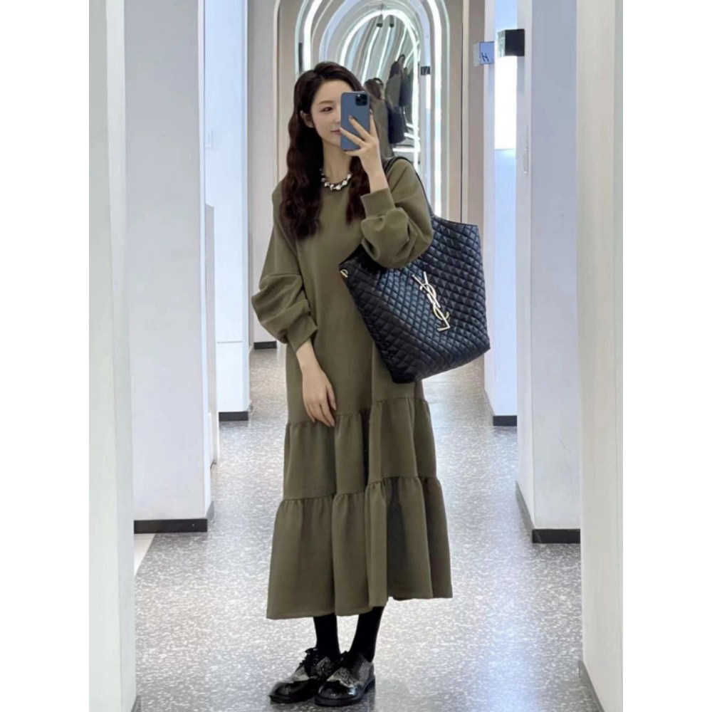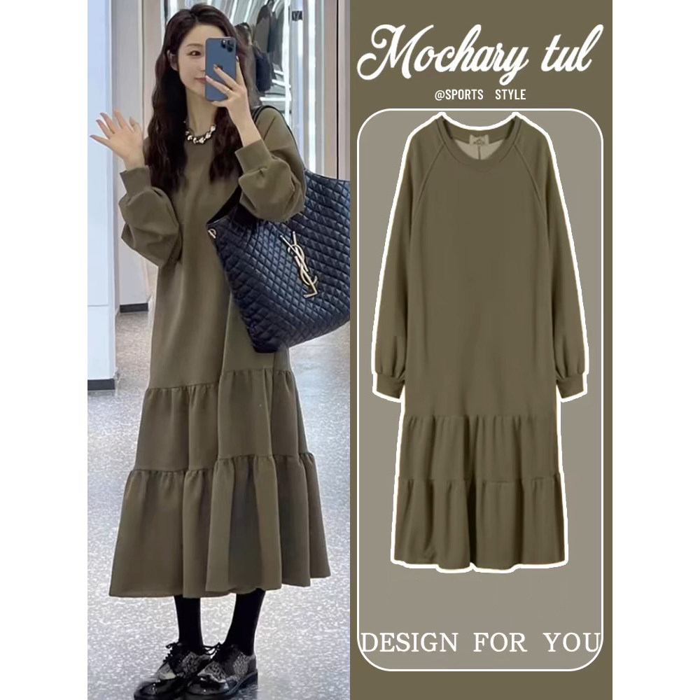 秋冬季新款大码女装胖mm宽松显瘦遮肚法式拼接连衣裙过膝打底长裙