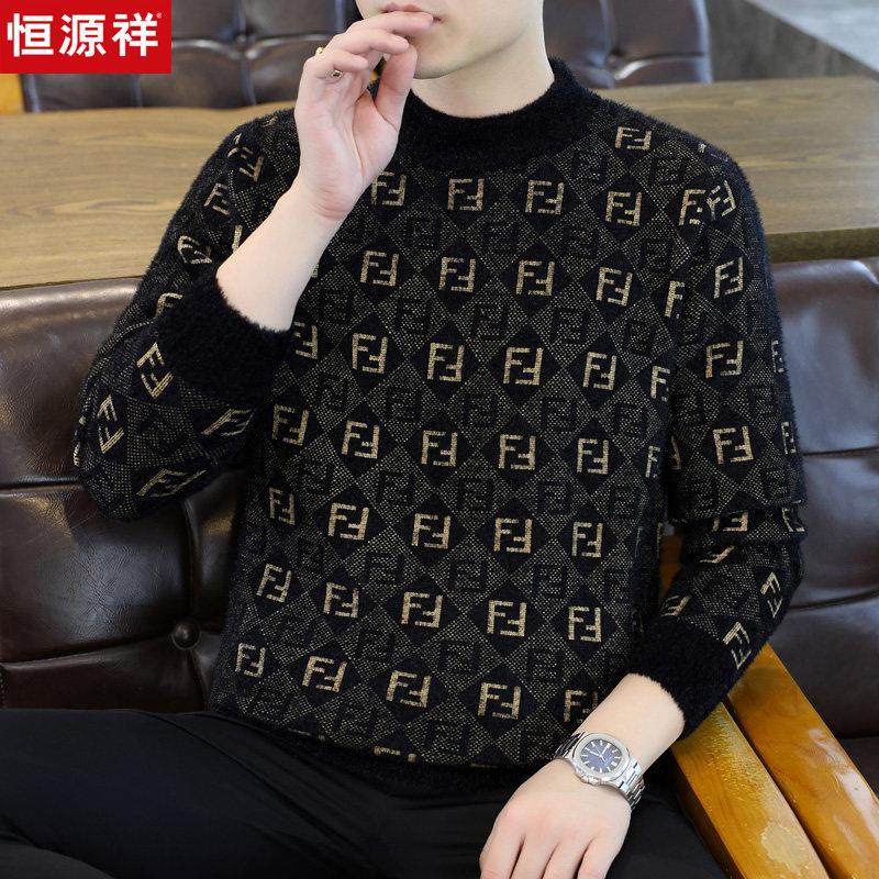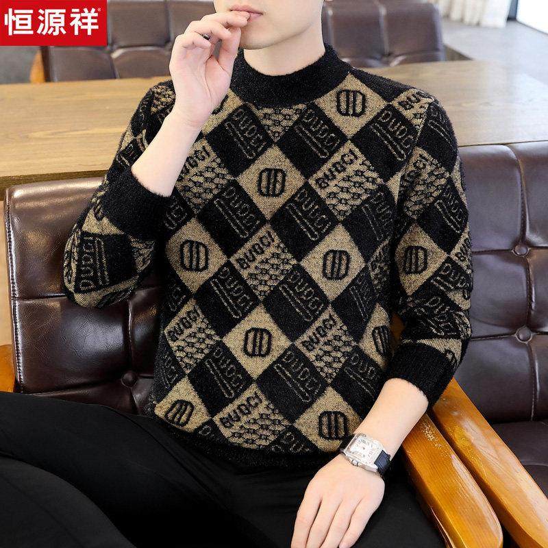 恒源祥半高领羊毛衫男款秋冬季男士毛衣新款加绒修身潮流针织打底