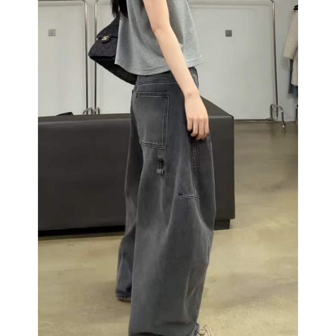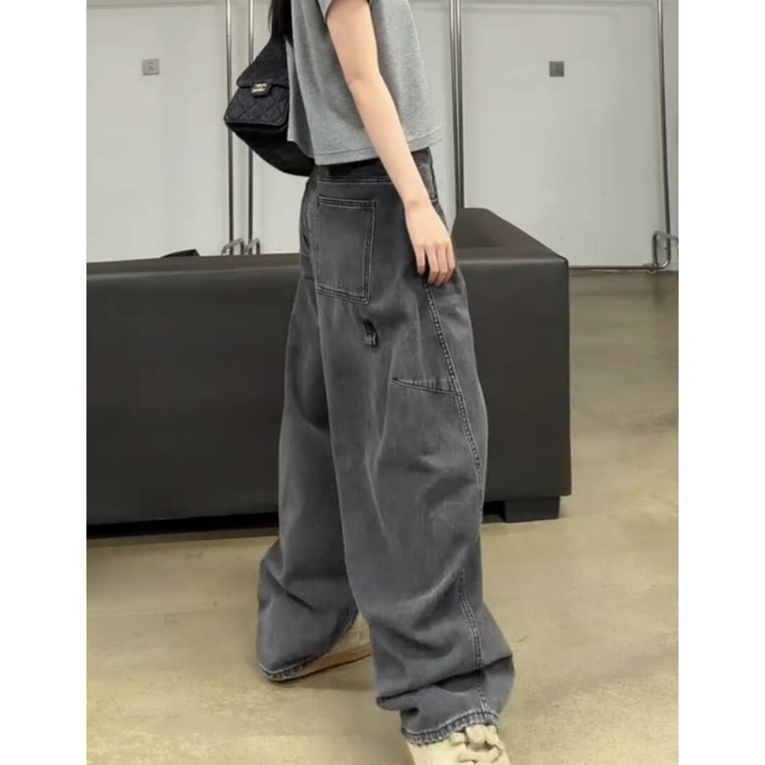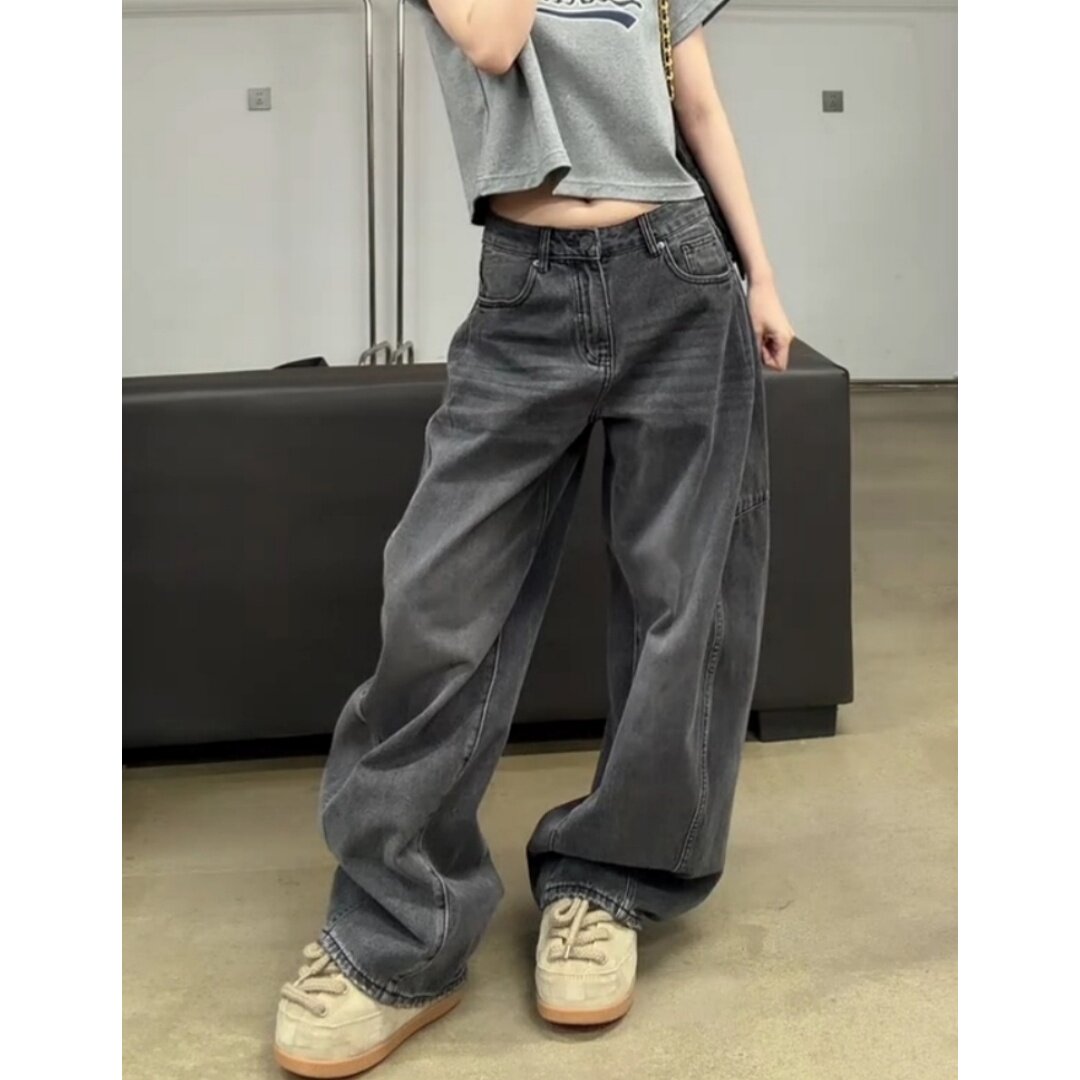 复古做旧松弛感弯刀牛仔裤2026早春新款高腰显瘦宽松阔腿裤