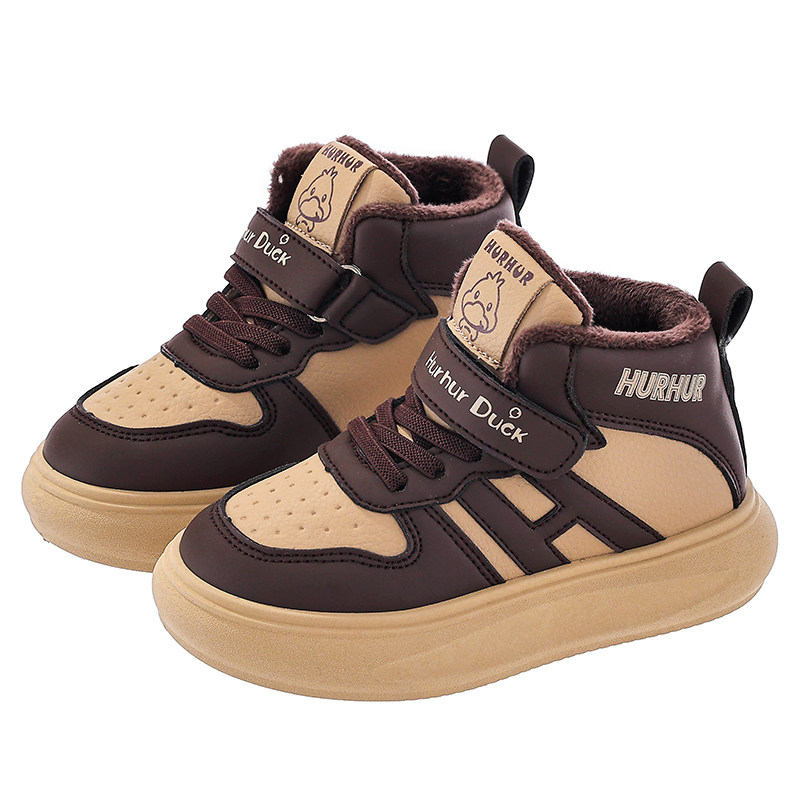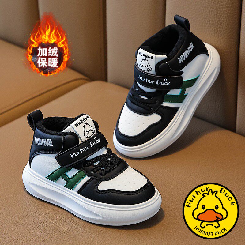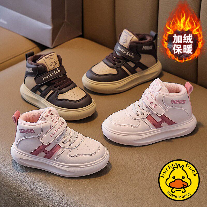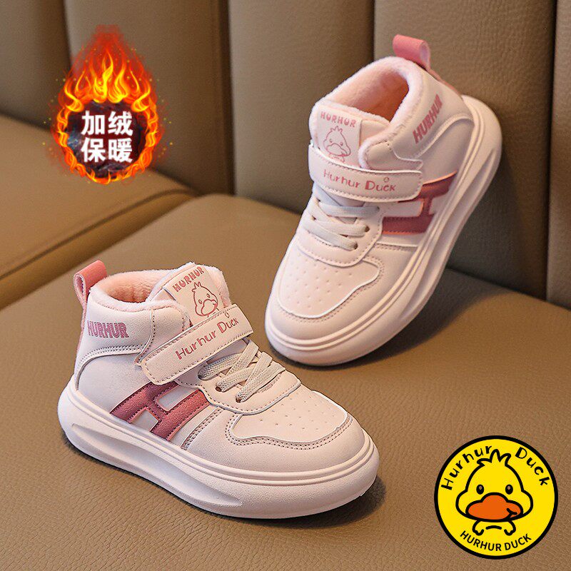 皮面儿童二棉2026款女童软底板鞋保暖加绒男女童高帮运动鞋潮