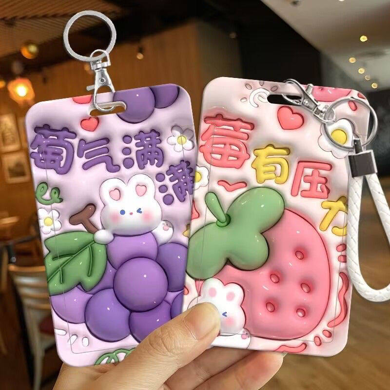 立体感水果卡套饭卡校园卡公交卡工作牌保护套门禁卡ins风高颜值水卡带挂绳钥匙扣保护套厂牌套校牌定制