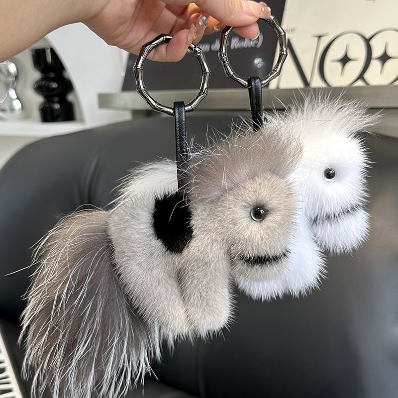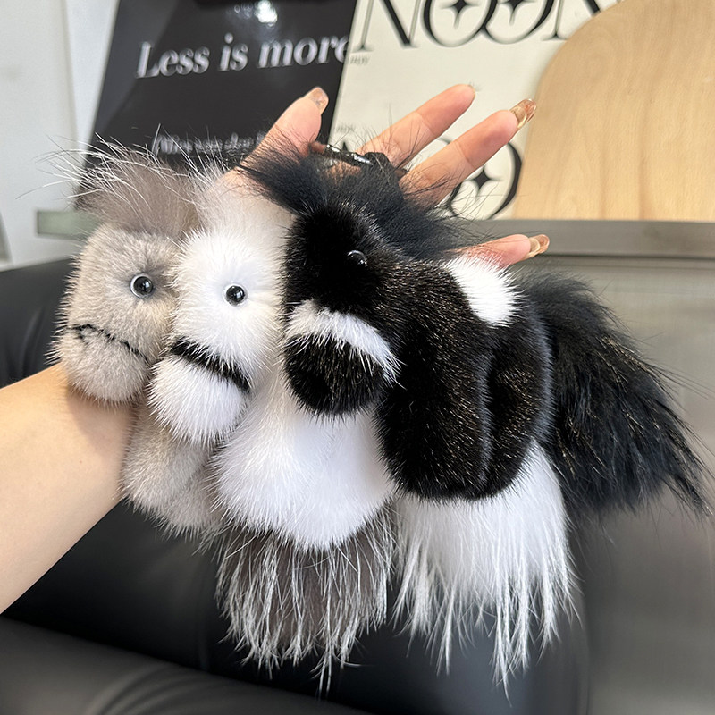 水貂毛可爱小马包包挂件ins时尚毛绒公仔玩偶皮草汽车钥匙扣挂饰