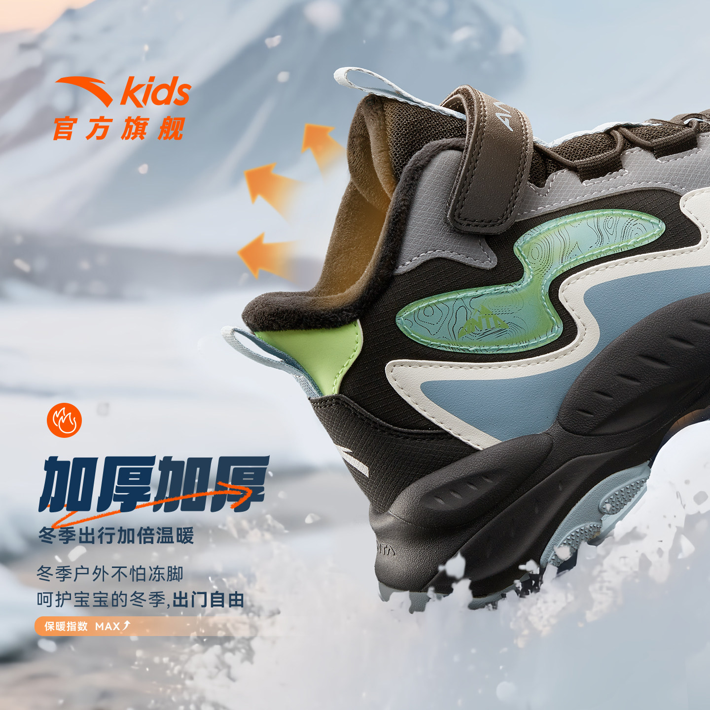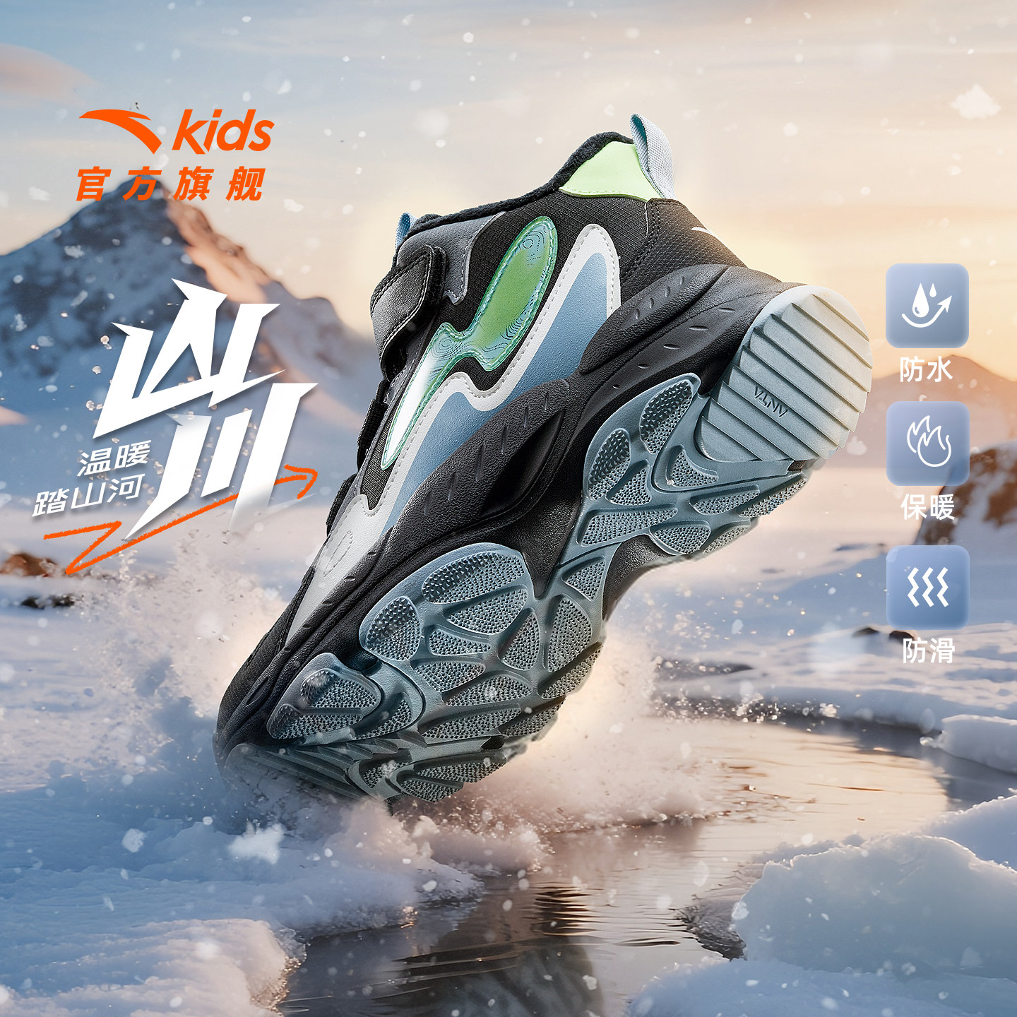 安踏童鞋儿童男大童二棉鞋2025冬季新款雪地靴加绒保暖运动鞋棉靴