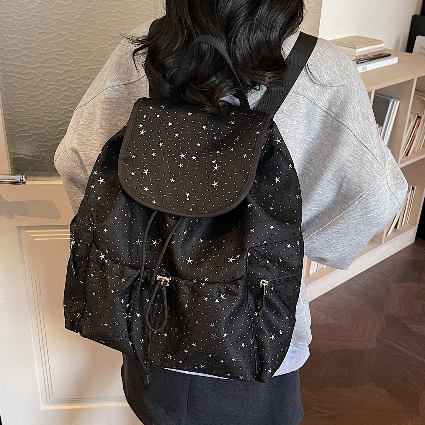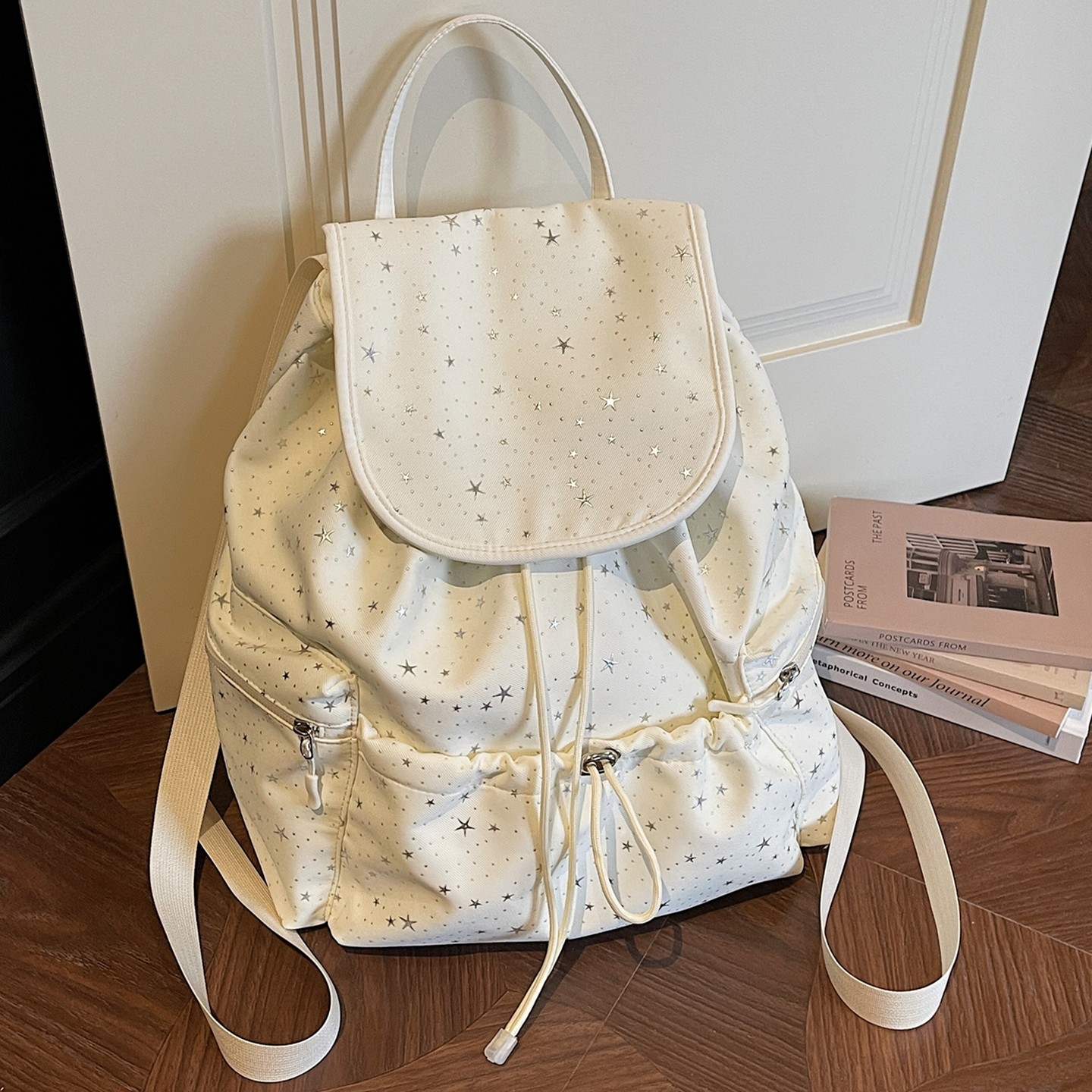 韩系大容量五角星抽绳双肩包小众设计感2026新款潮百搭背包女款