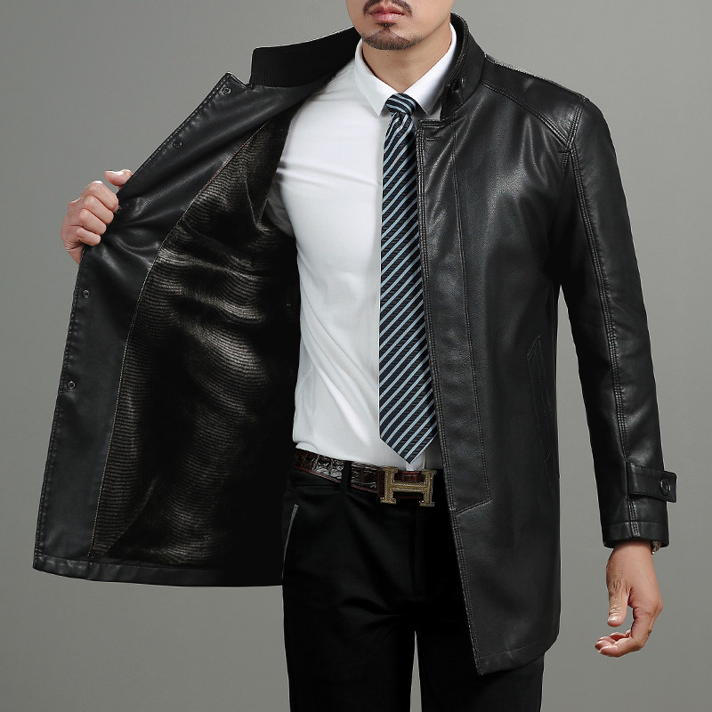 真皮风衣男士中长款真皮皮衣男加厚皮风衣绵羊皮翻领真皮大衣外套