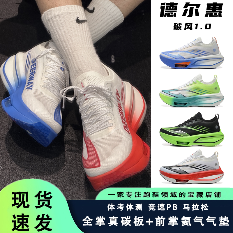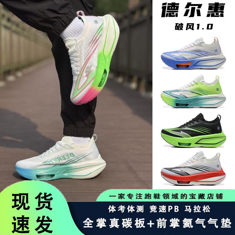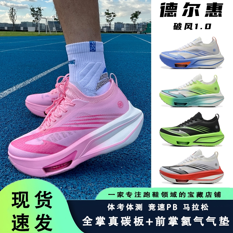 德尔惠破风1.0 全掌碳板跑鞋学生体测考竞速青少年气垫跑步鞋男女