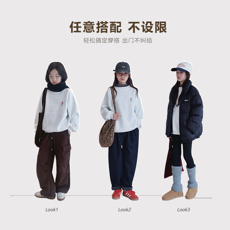 女童加绒卫衣2025冬装新款女大童初中生加厚儿童学生保暖套头上衣