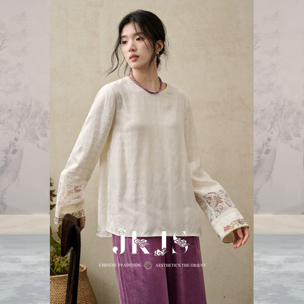 JKJS【栖云暖】新中式人丝提花衬衫刺绣小衫早春女装2026新款衬衣