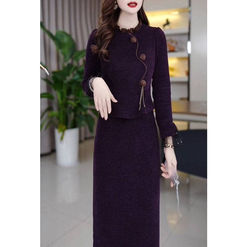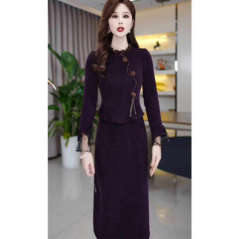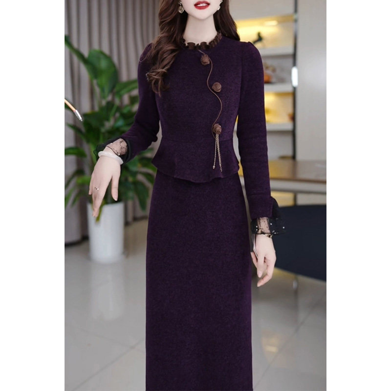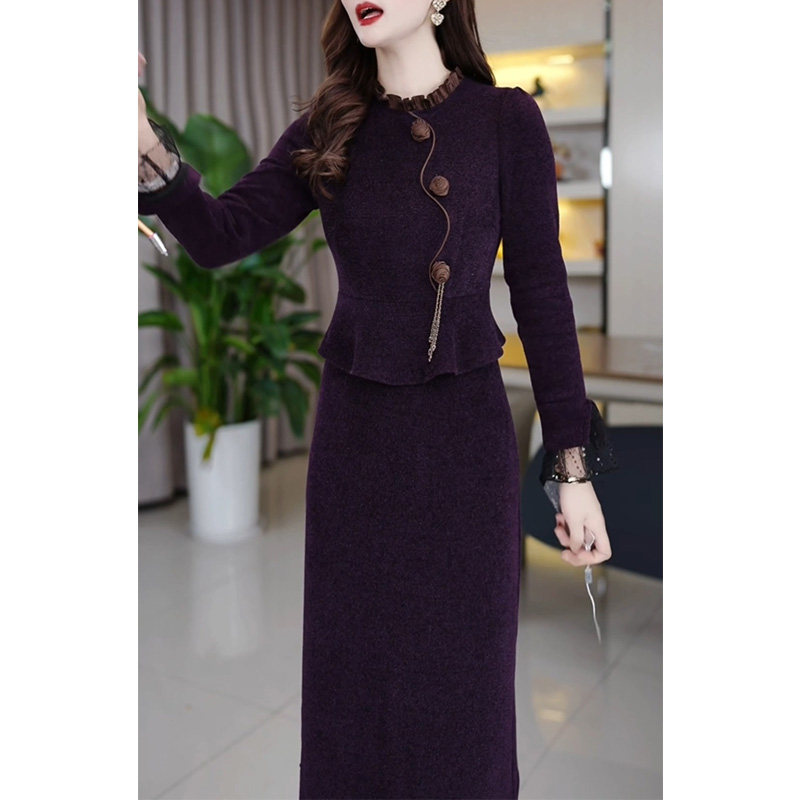 配大衣加厚长袖连衣裙女2025秋冬新款今年流行妈妈假两件打底裙子