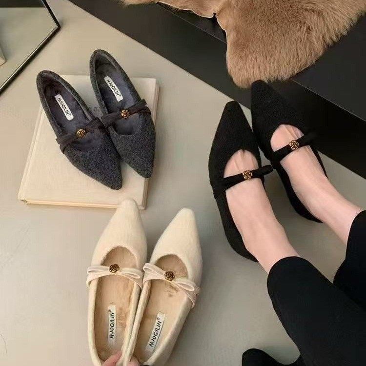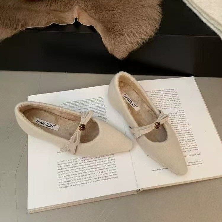 法式复古毛呢玛丽珍单鞋女2025秋冬新款加绒保暖棉鞋内增高毛毛鞋