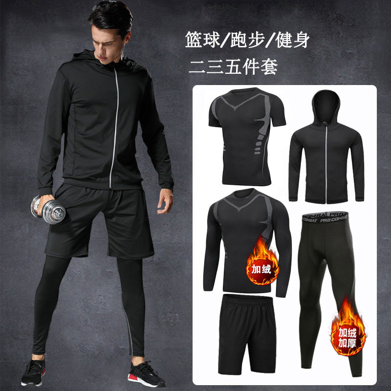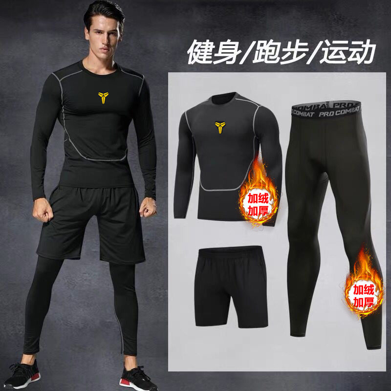冬天跑步套装男田径训练服高弹男运动保暖内衣紧身速干衣篮球加绒
