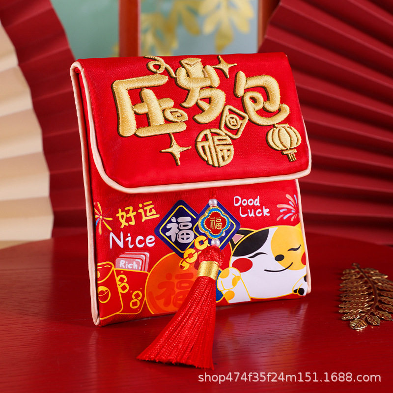 平安喜乐2026年马年生日周岁满月红包袋金榜题名布艺刺绣新年福袋