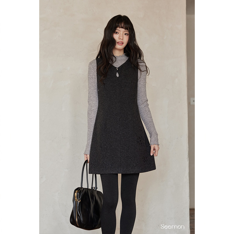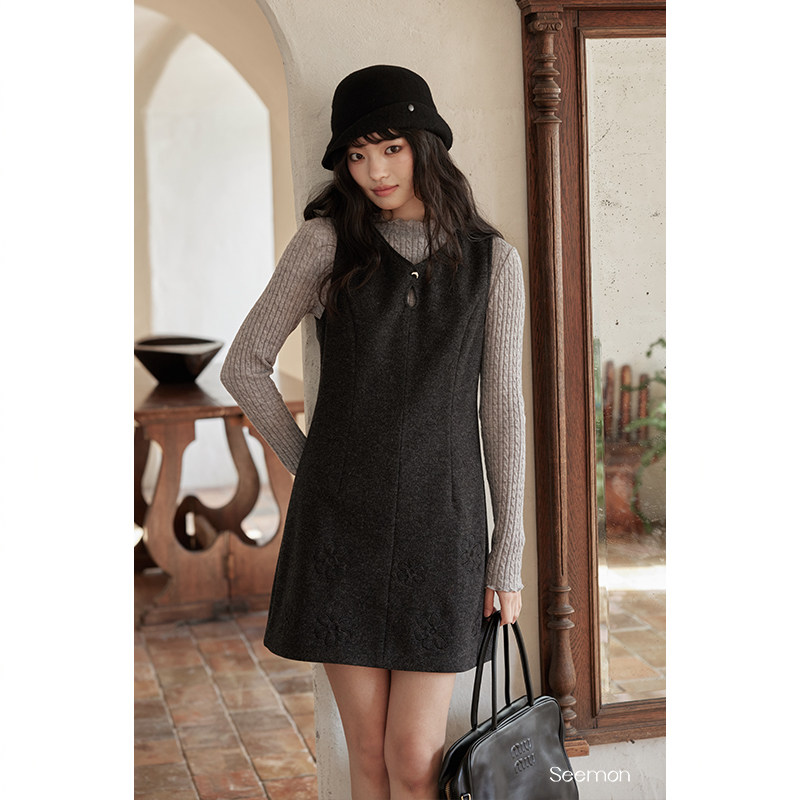 夕蒙2026新款春季巨好看小个子绝美独特漂亮背心连衣裙t恤套装女