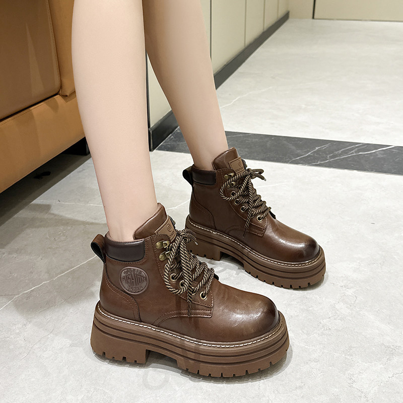8cm厚底马丁靴小码女鞋3233真皮靴子复古内增高英伦风小个子短靴