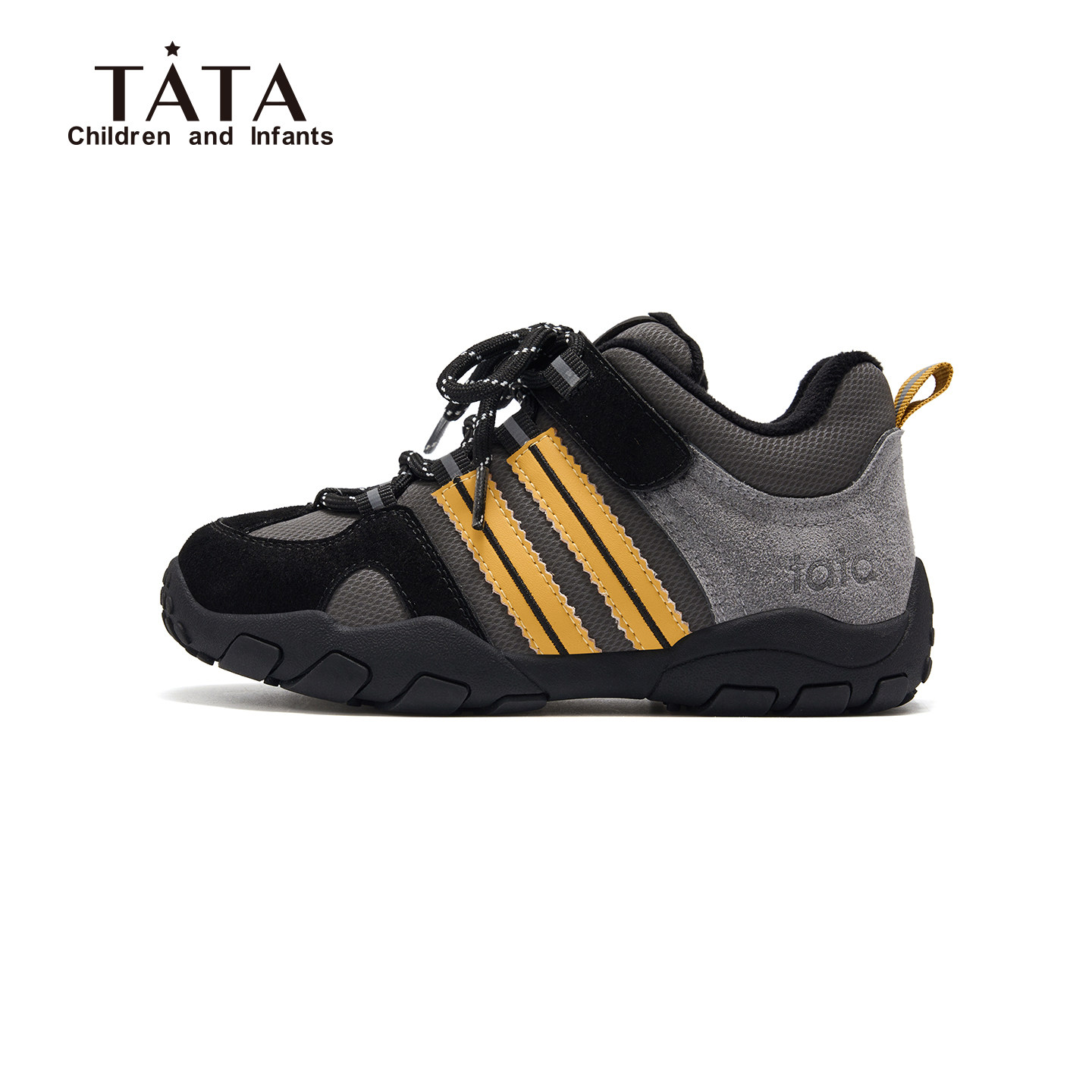 TATA童鞋儿童加绒运动鞋2025冬季新款黑色德训鞋男女童轻便大棉鞋