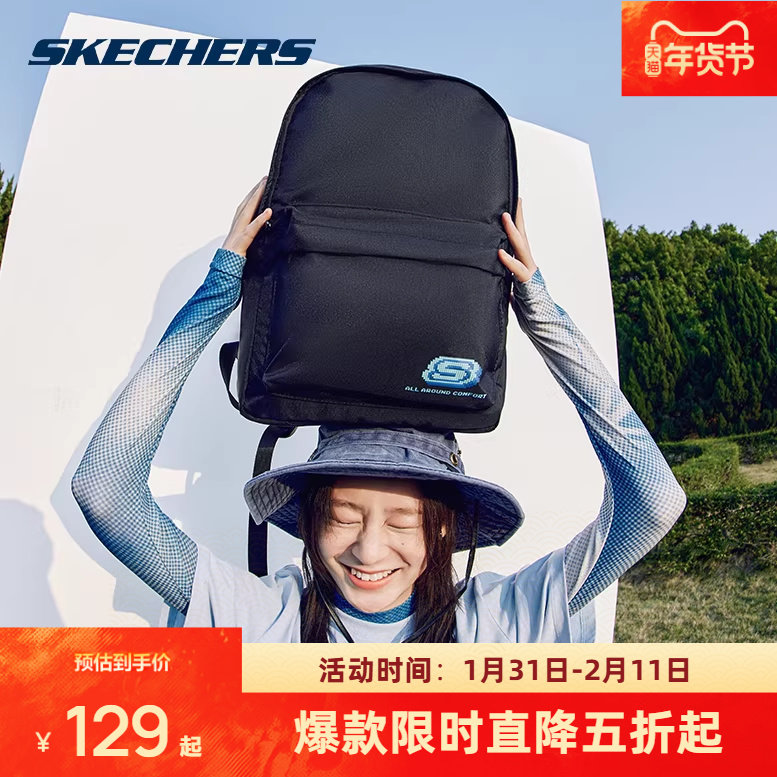 斯凯奇男女款双肩包学生高中生书包红色运动旅行运动背包电脑包