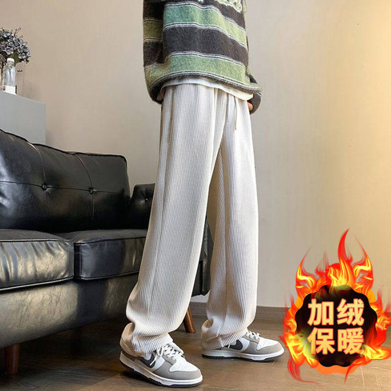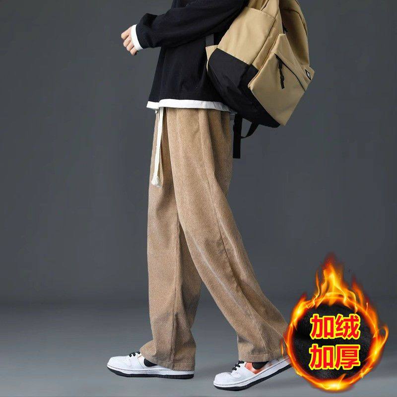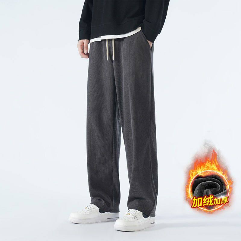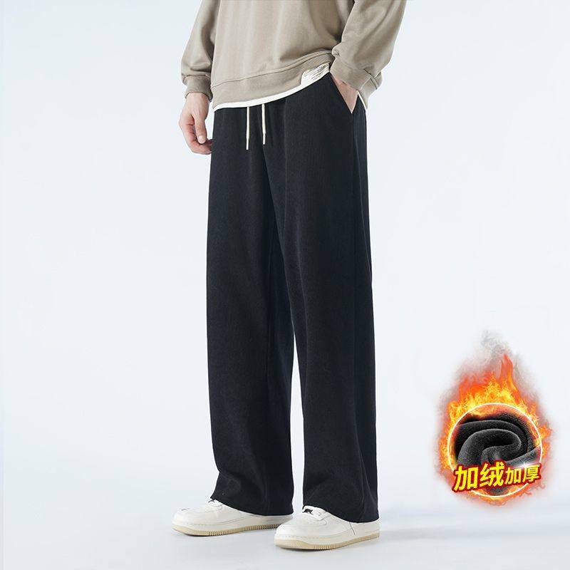 男士春秋季休闲卫裤垂感男款运动直筒宽松灯芯绒秋冬季加绒长裤子