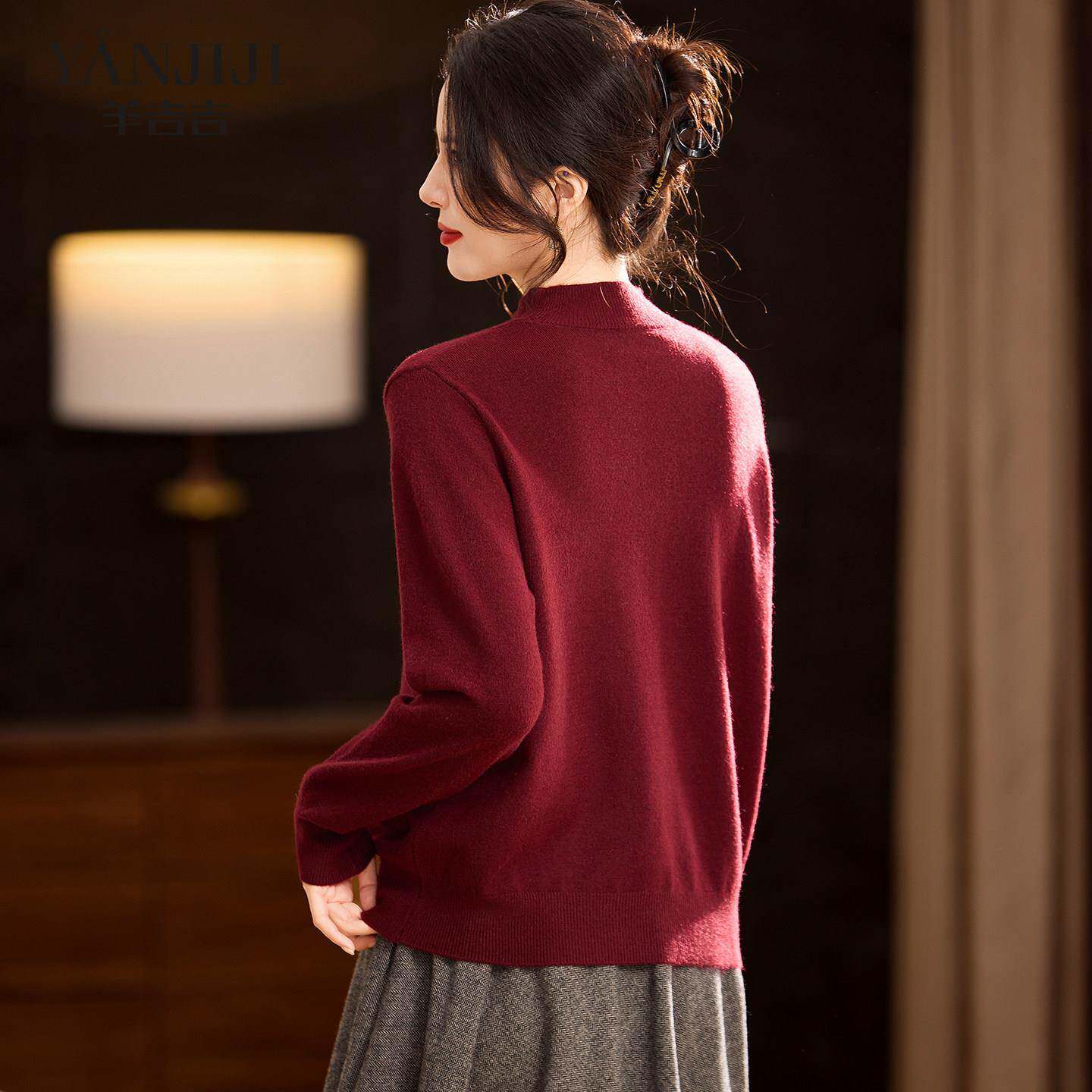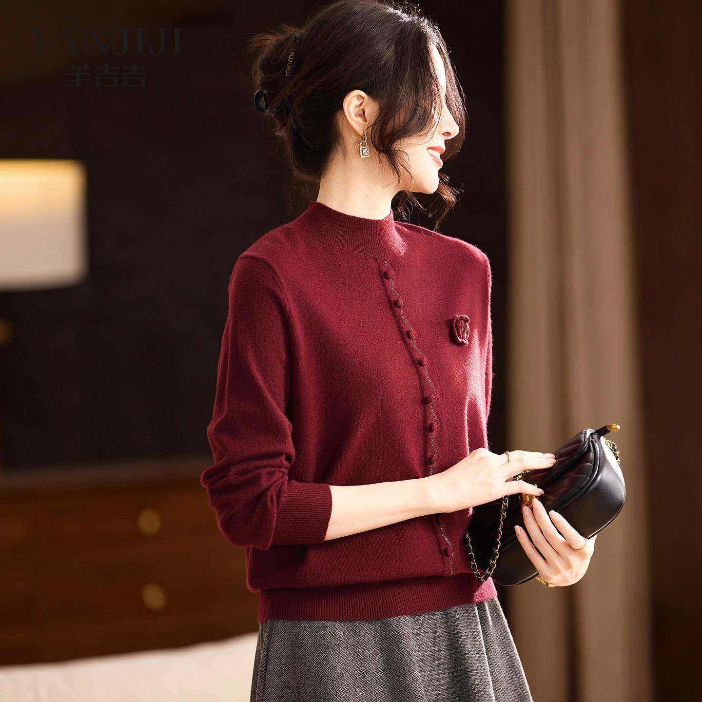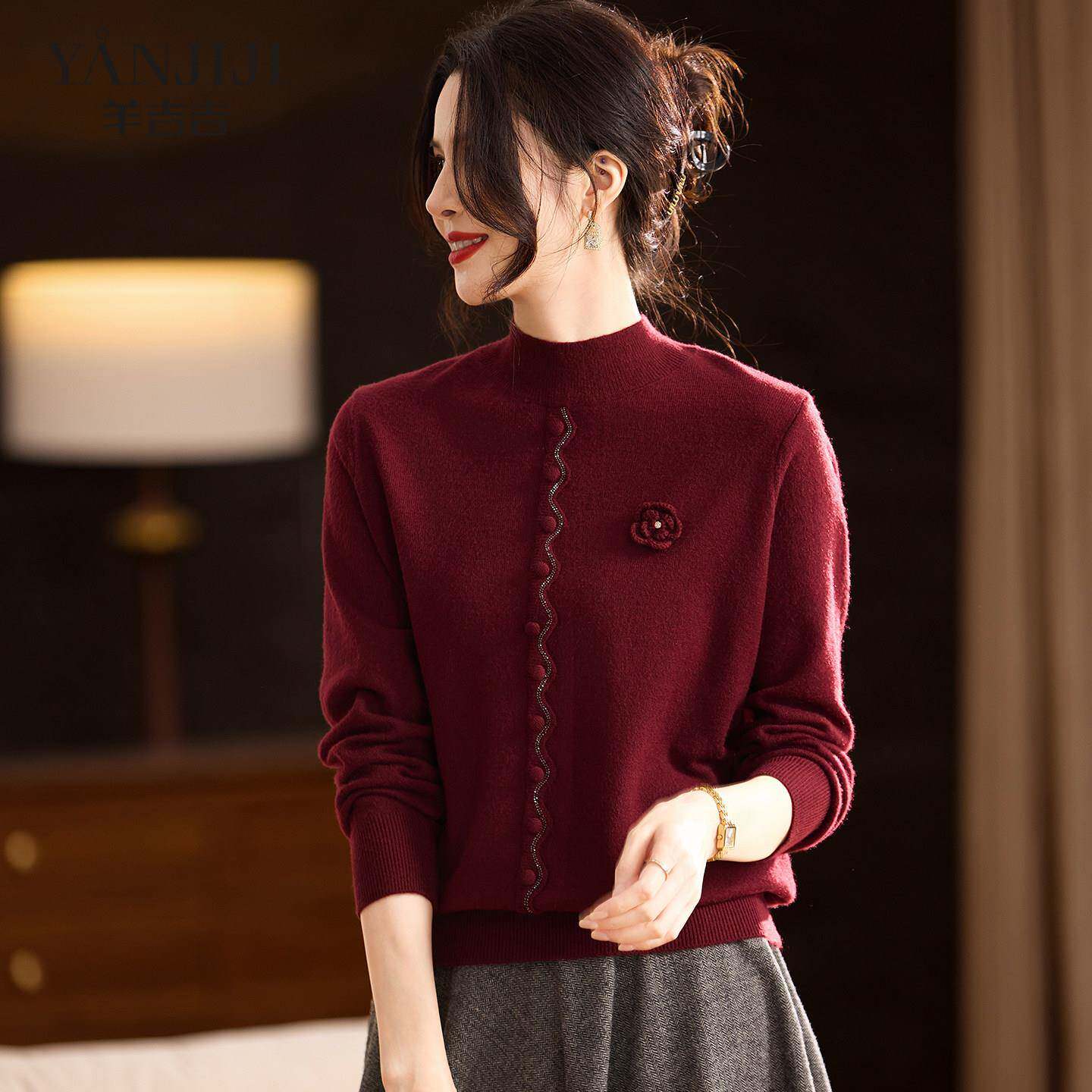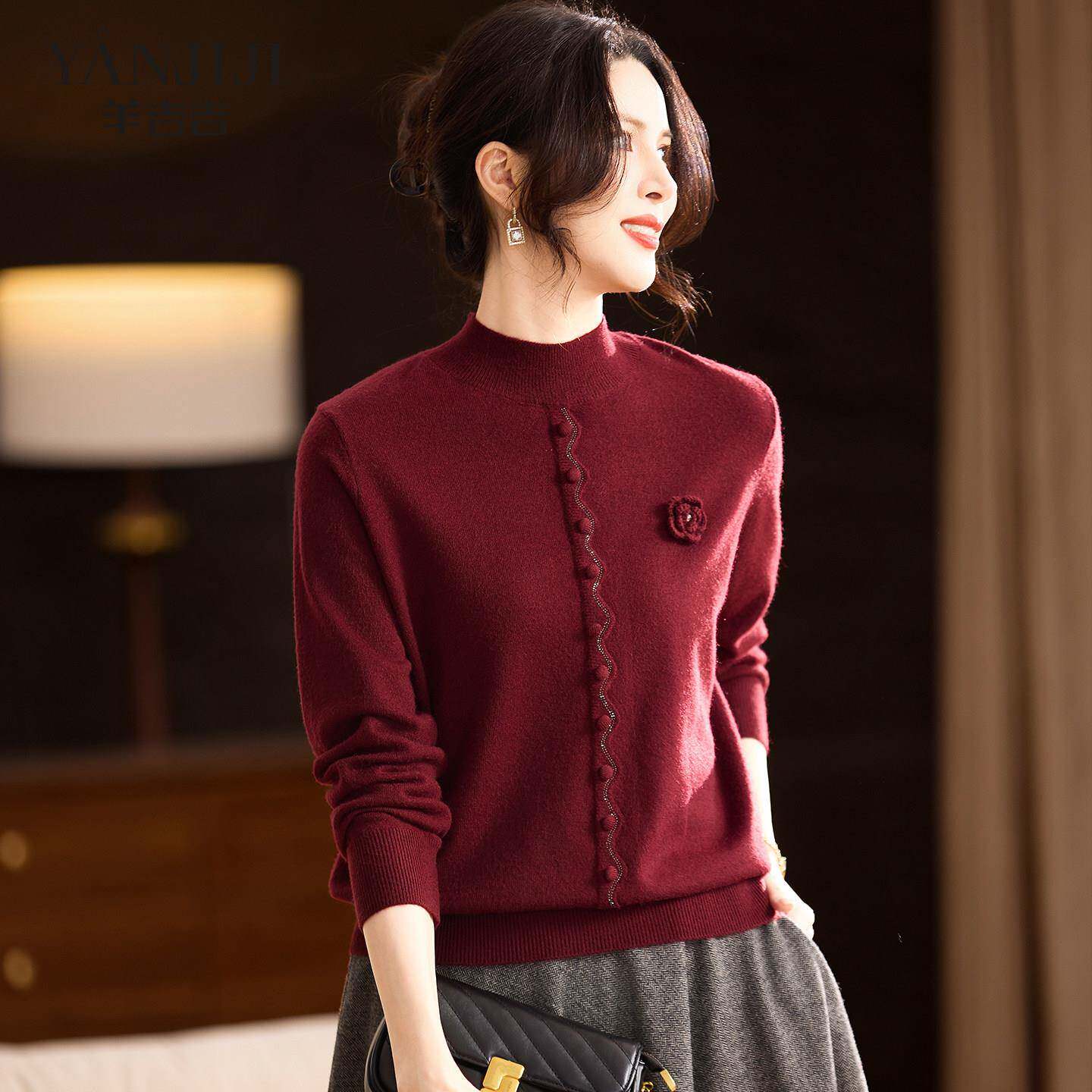 妈妈毛衣冬装红色喜婆婆打底衫中老年女装新款高贵冬季内搭针织衫