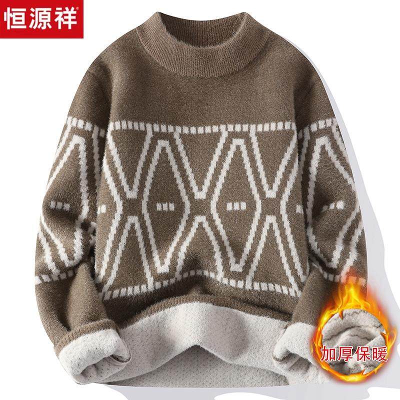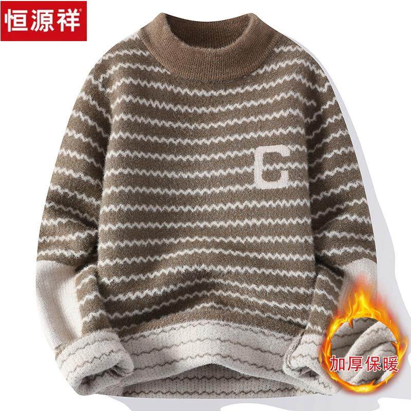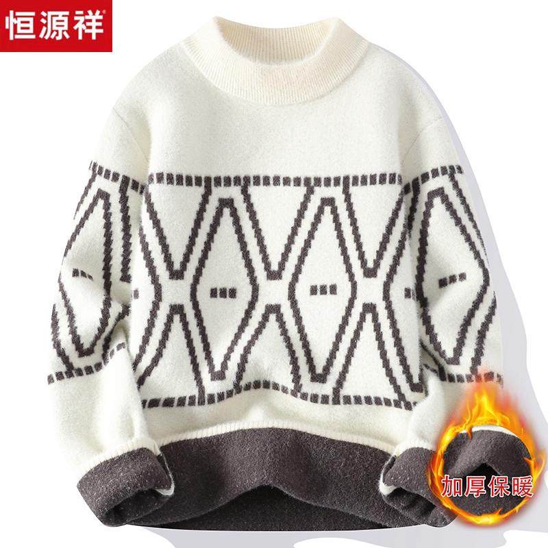 恒源祥毛衣男2023新款冬季青少年韩版加绒加厚初中高中学生羊毛衫