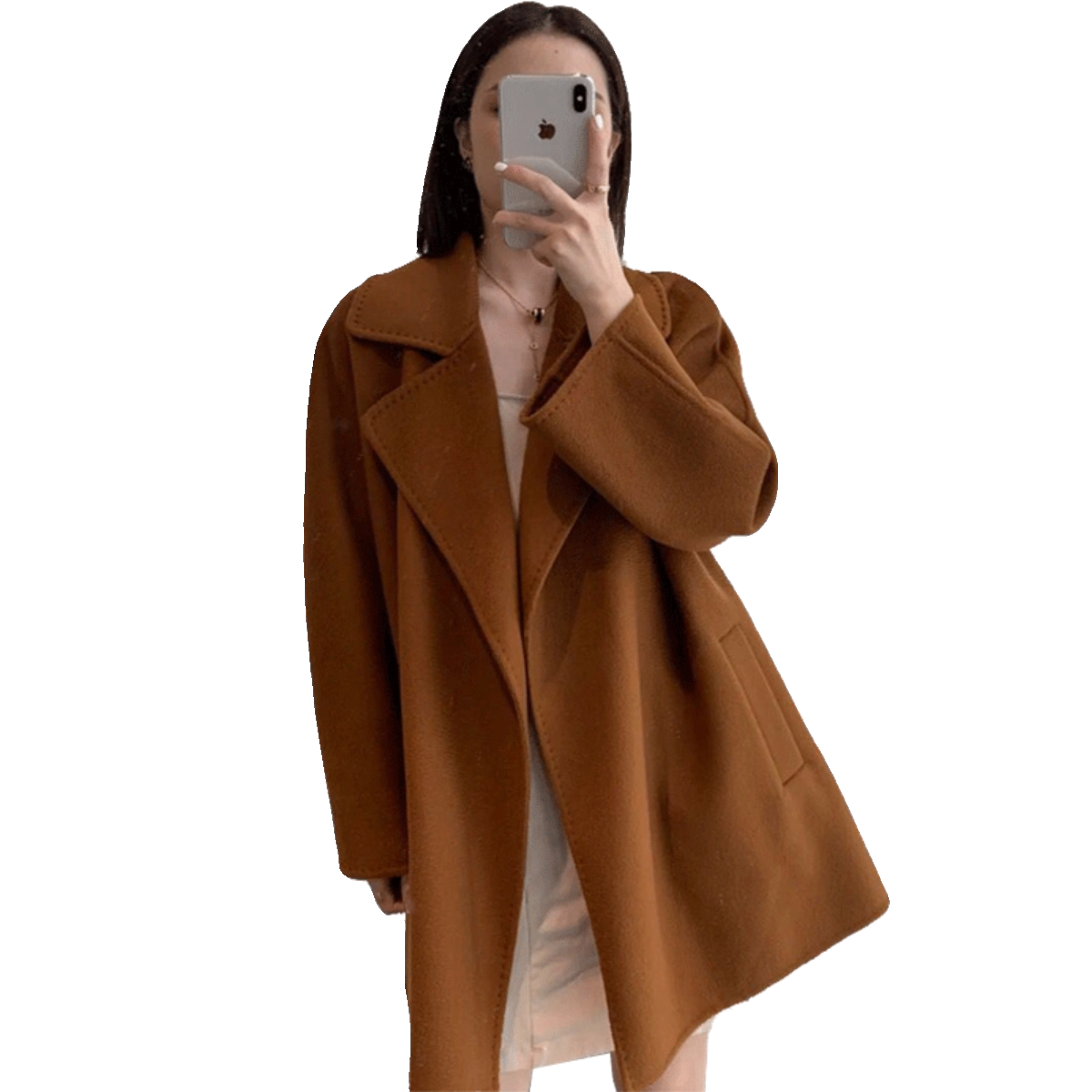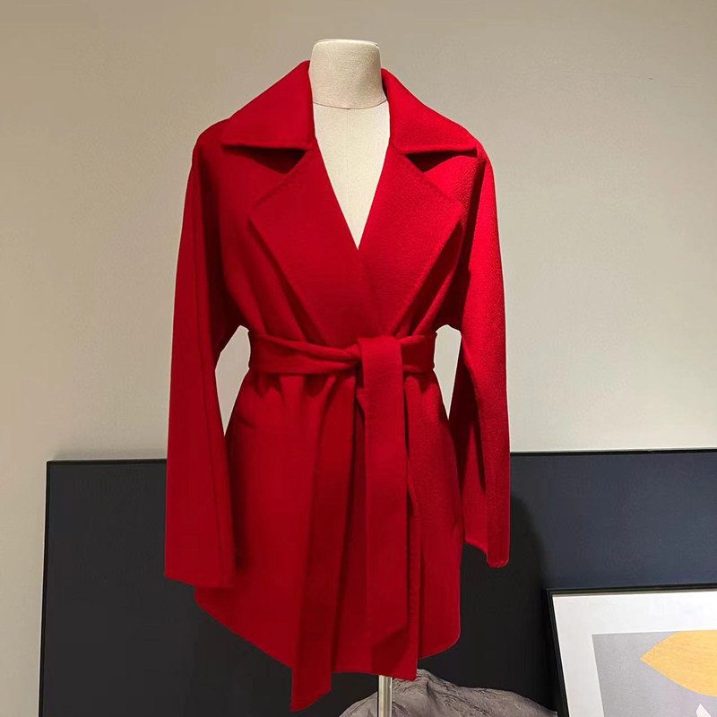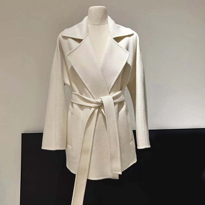 M家同款新品gas双面羊绒水波纹大衣女高端小个子毛呢系带短款外套