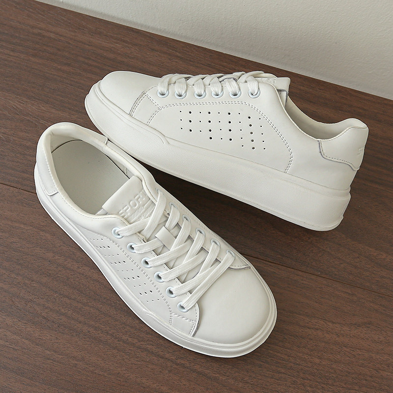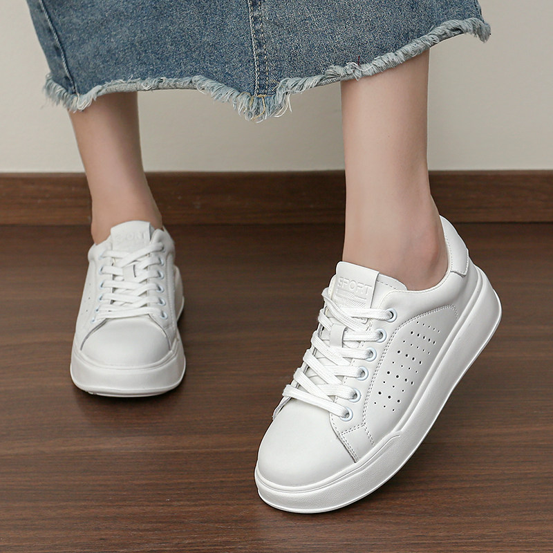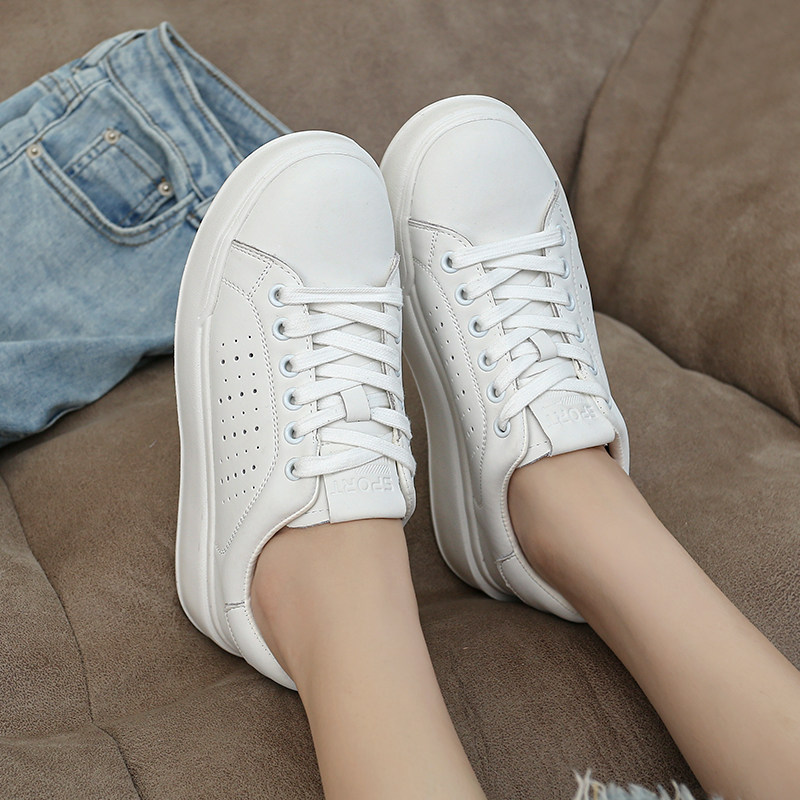 真皮厚底镂空小白鞋女夏季薄款女鞋子轻便运动平底板鞋女款休闲鞋