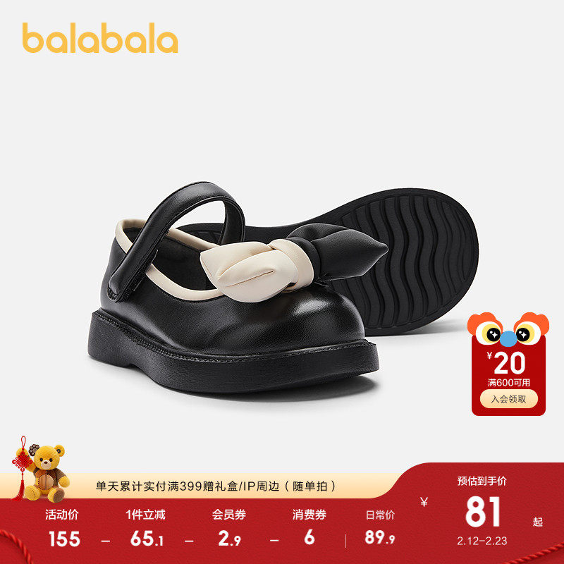 巴拉巴拉童鞋女童公主鞋甜美可爱蝴蝶结鞋子秋季儿童休闲鞋魔术贴