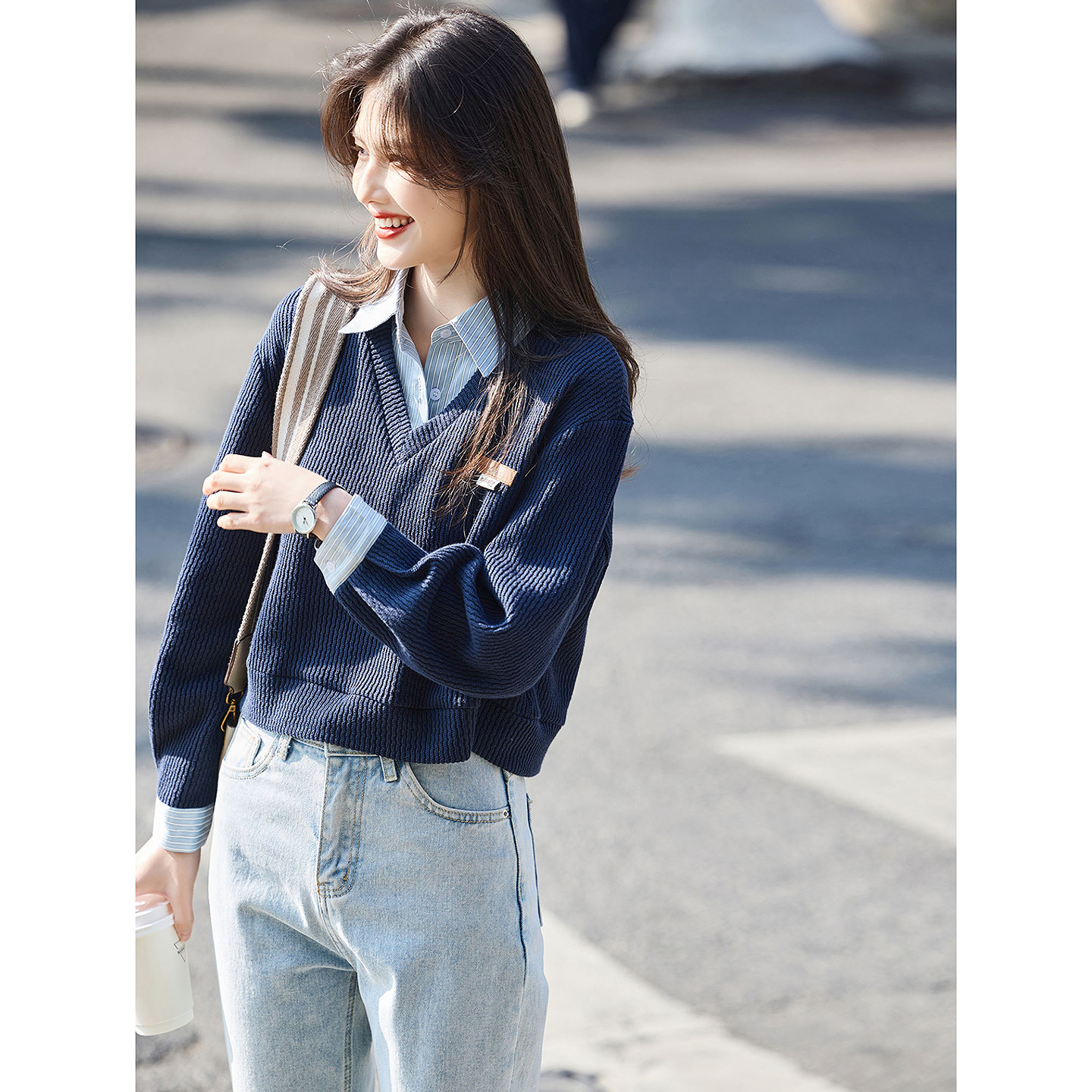 时尚卫衣女款小个子2026春季拼接假两件外套减龄短款套头针织上衣