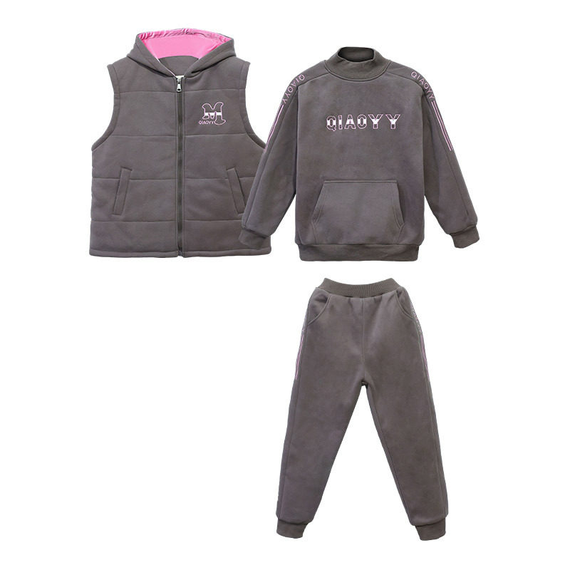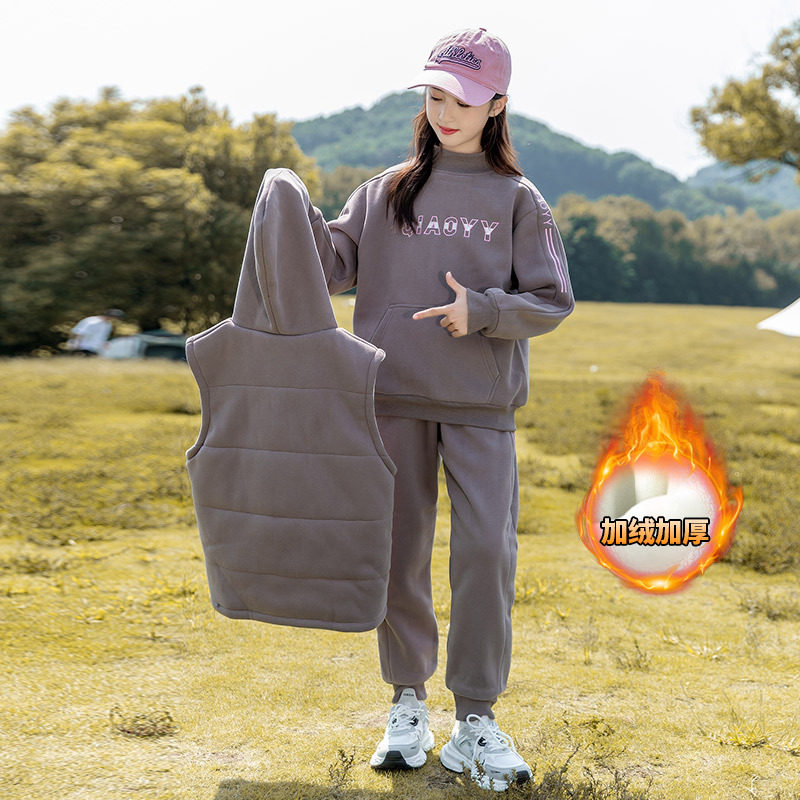 女童加绒秋冬卫衣套装2026新款洋气大童女装冬装儿童加厚三件套
