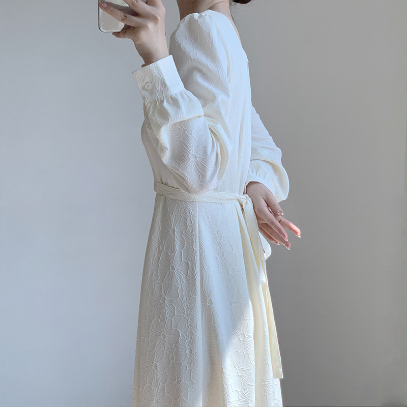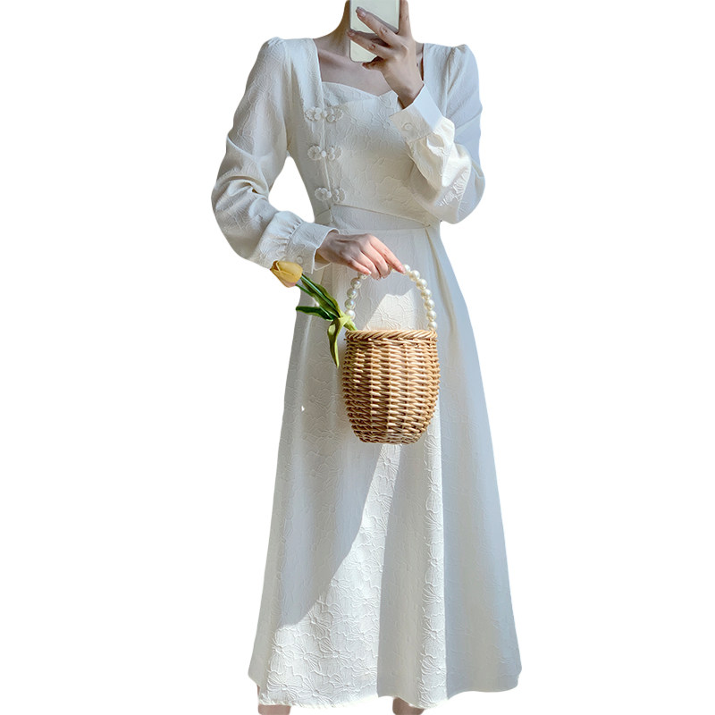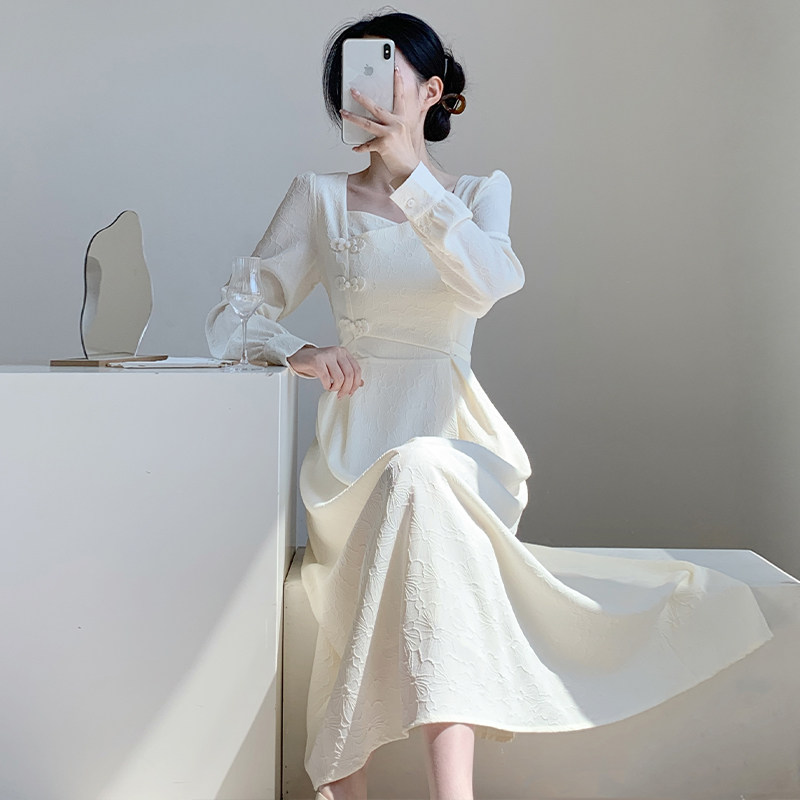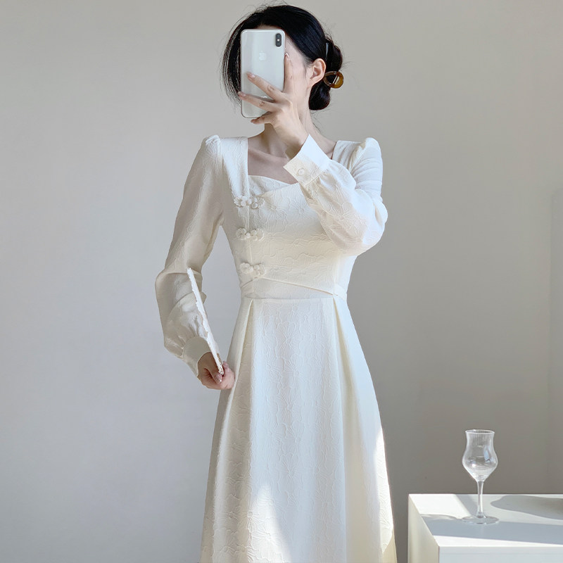 国风改良旗袍新中式白色长袖连衣裙女秋季高级感正式场合收腰长裙