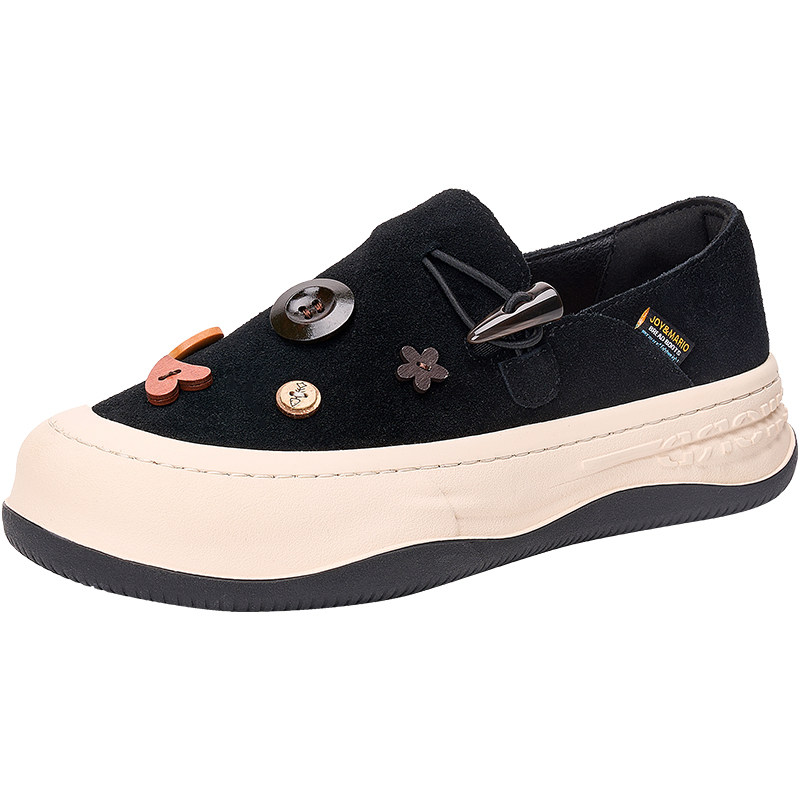 快乐玛丽勃肯鞋女2026春季新款一脚蹬厚底增高百搭黑色乐福休闲鞋