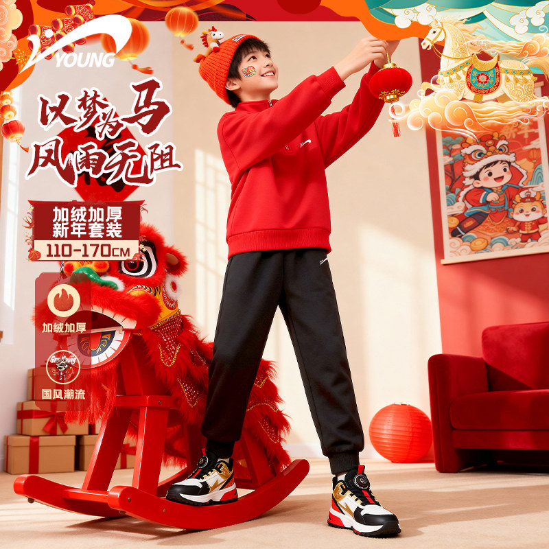 贵人鸟童装男童红色卫衣2026新款衣服儿童本命年12岁套装运动冬装
