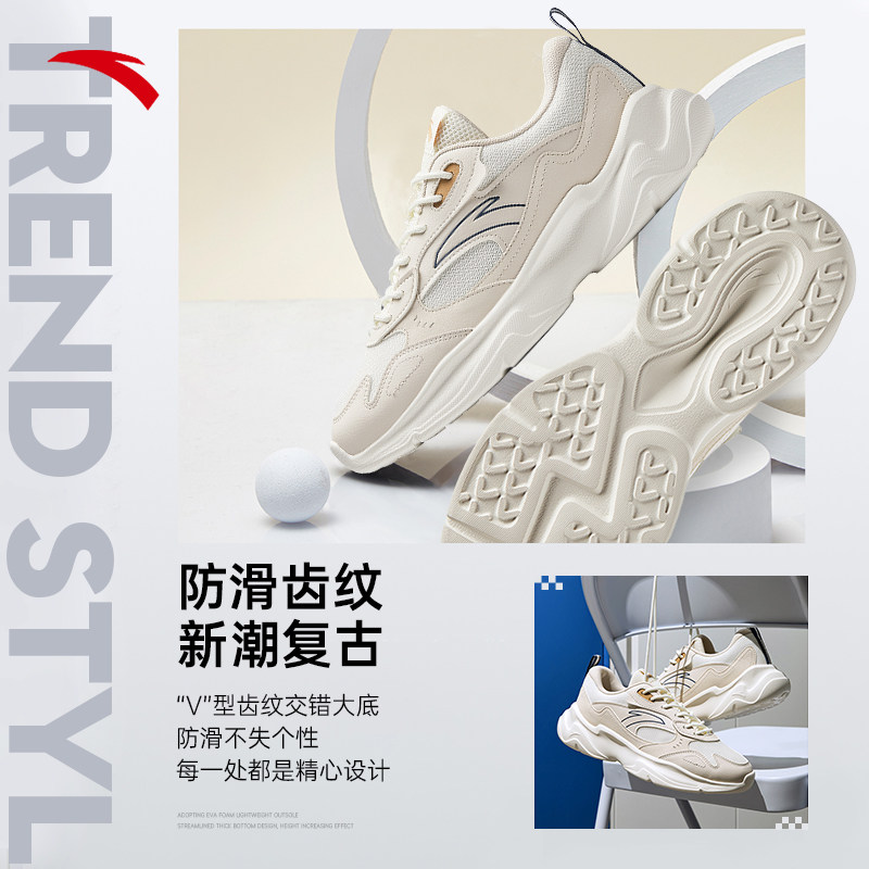 安踏休闲鞋男鞋2026春季新款网面透气老爹鞋轻便厚底增高运动鞋子