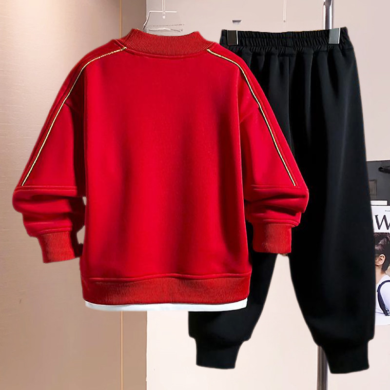 童装男童加绒套装冬季新款男孩红色中大童2025马年本命年儿童衣服