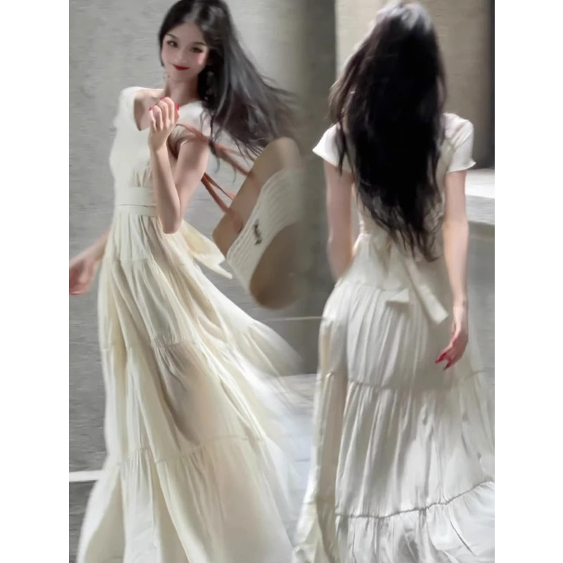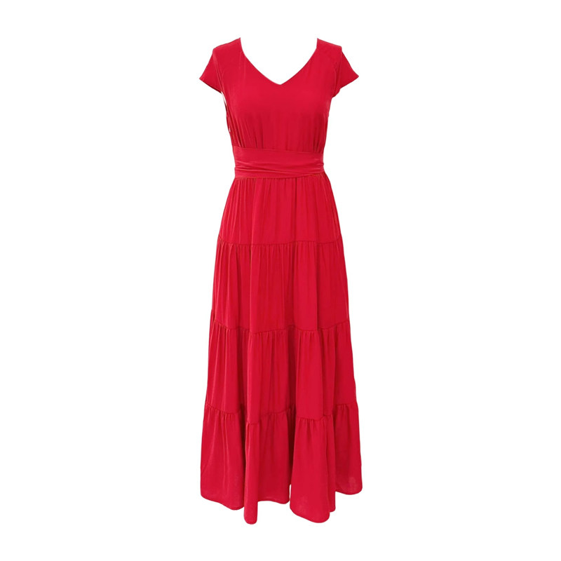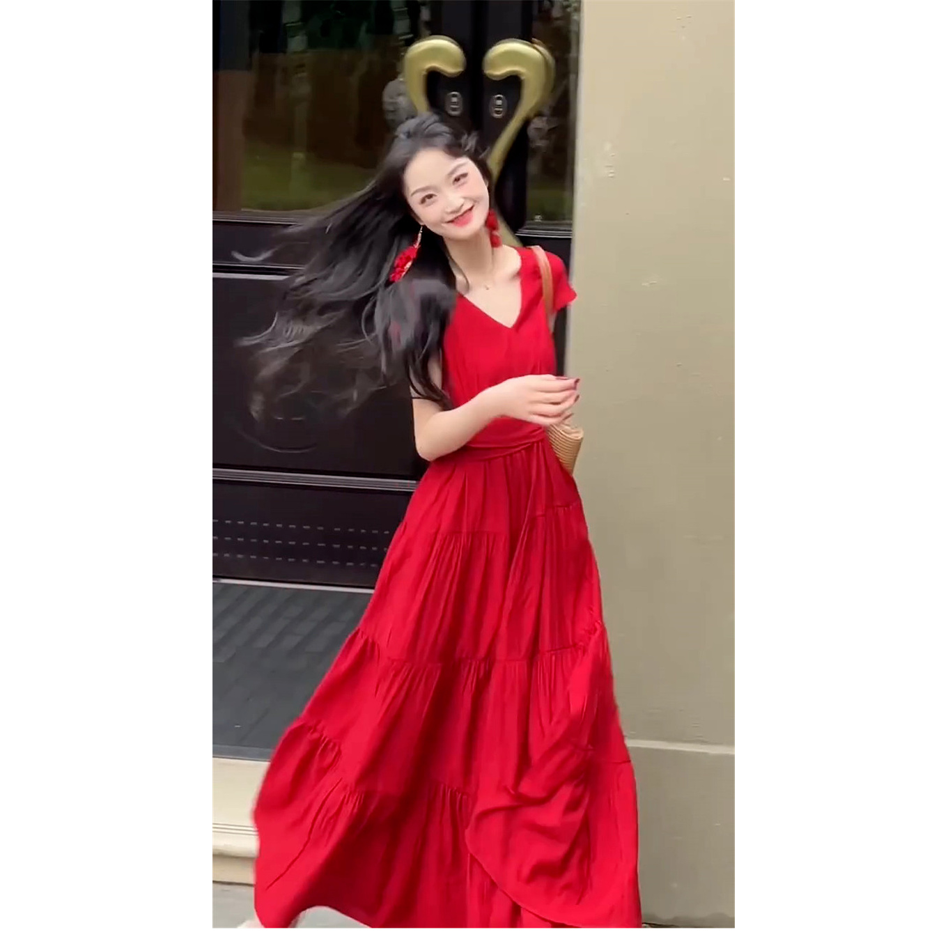 小个子巨好看红色连衣裙子女夏2025新款今年流行爆款掐腰气质长裙