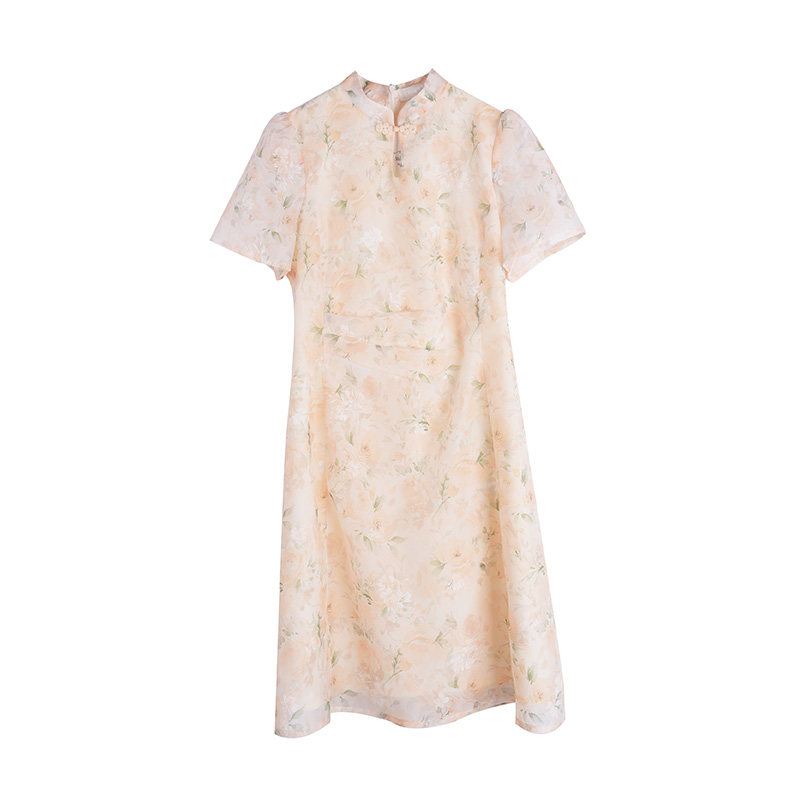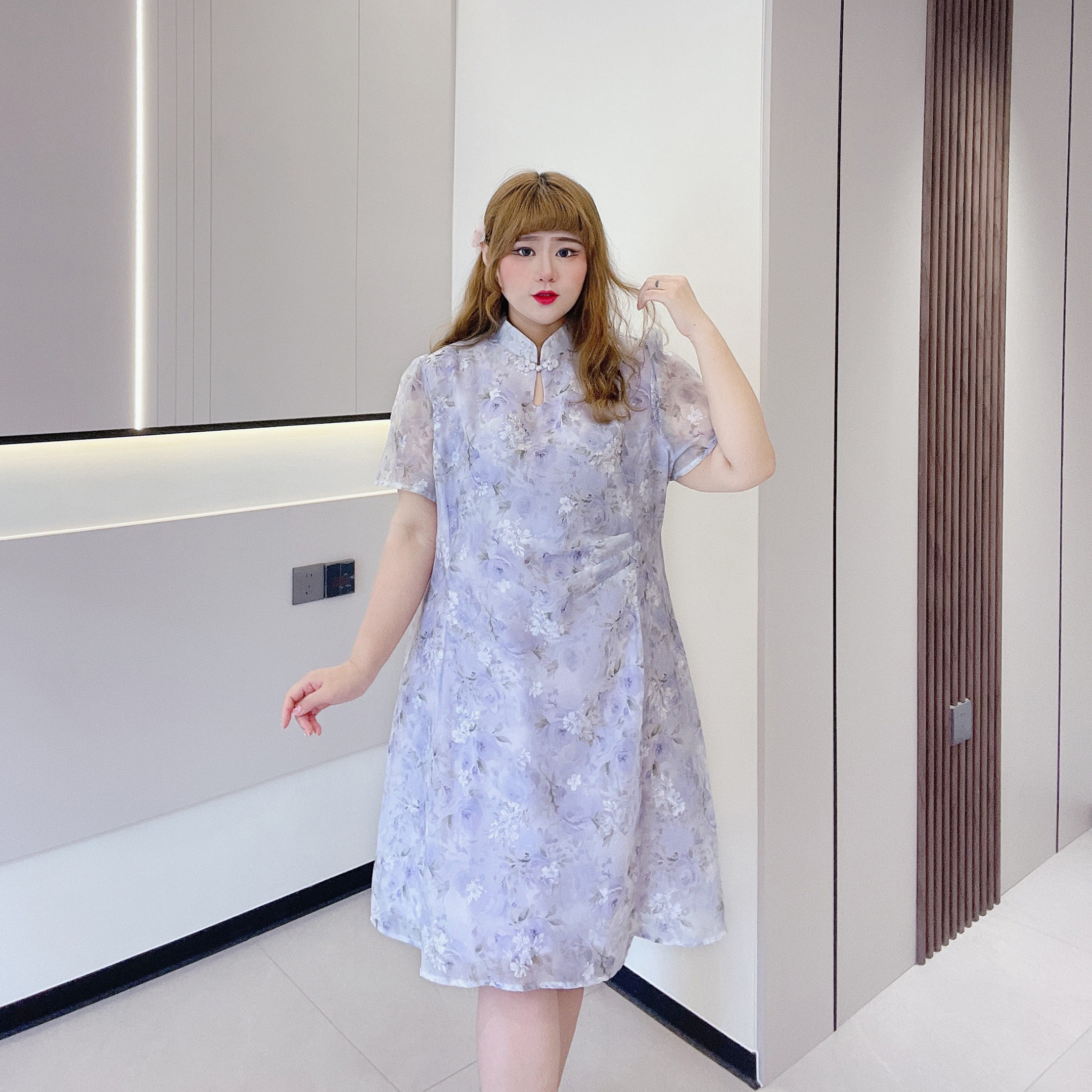 温柔风小个子改良旗袍裙胖莹莹大码女装胖妞甜美显瘦短款连衣裙
