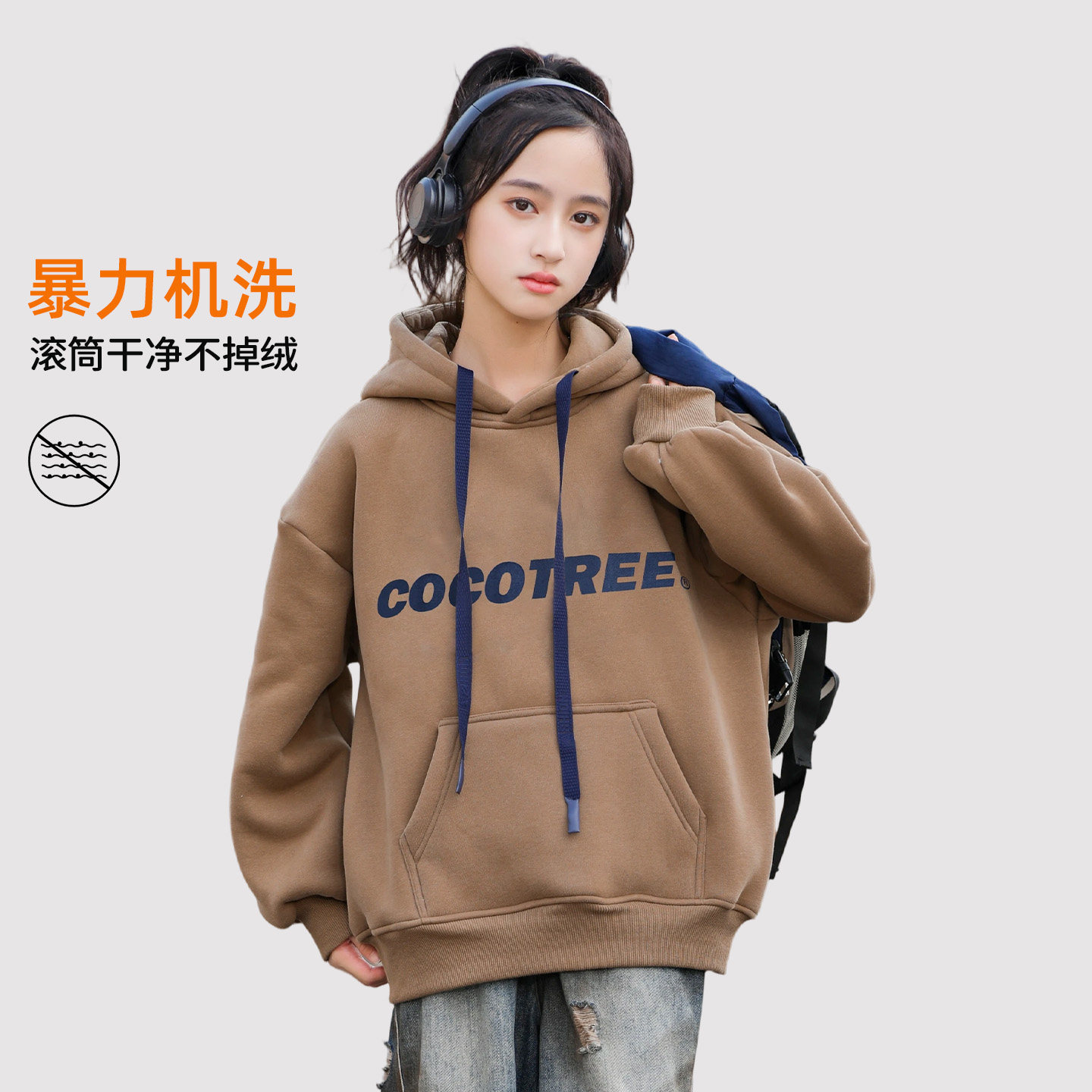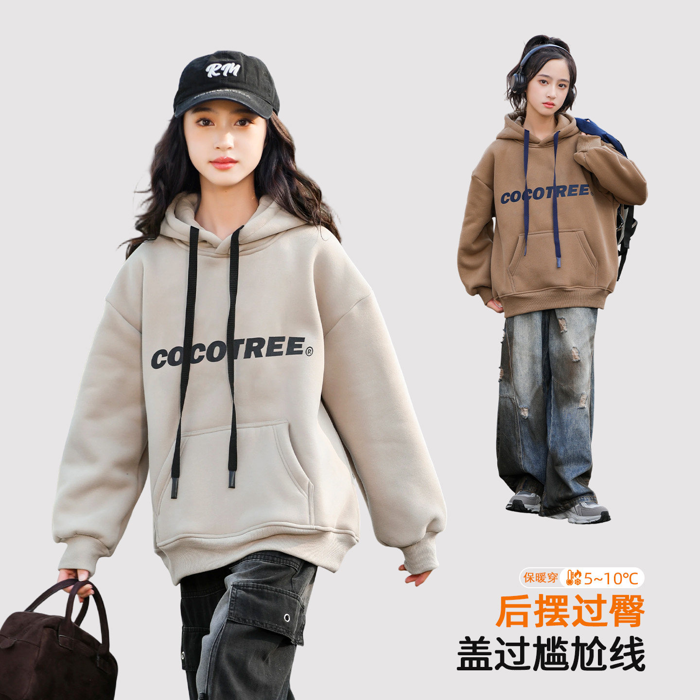 女童秋冬连帽卫衣2025新款女大童加绒冬装青少年女款加绒加厚上衣