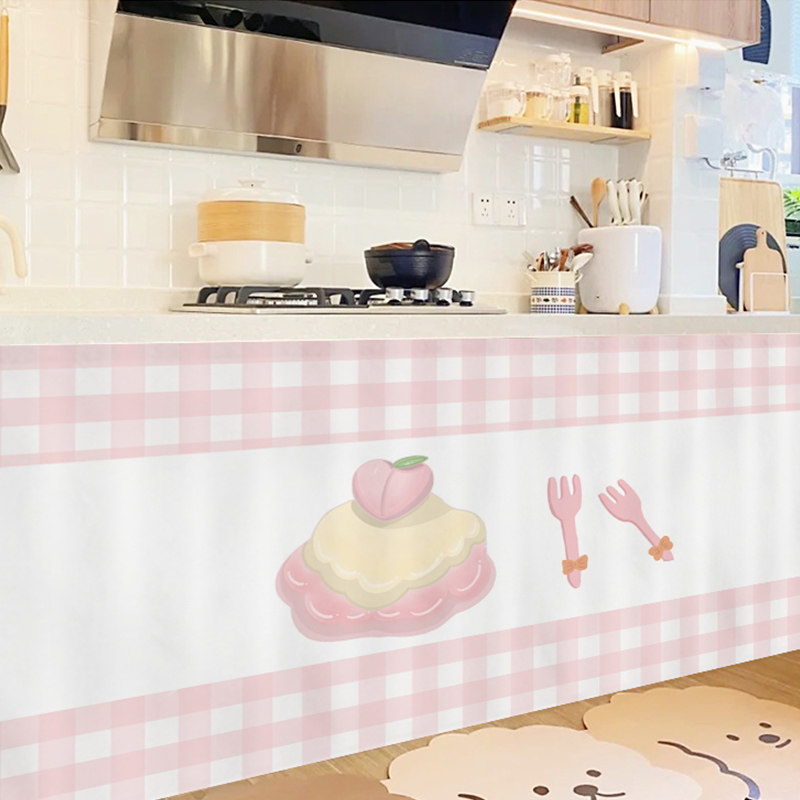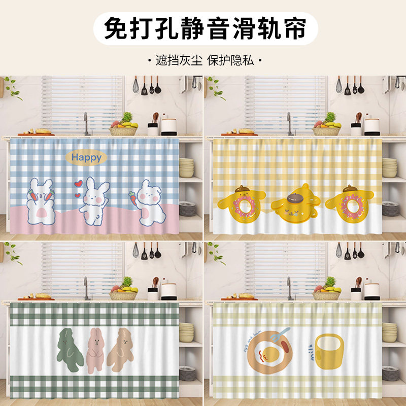 橱柜遮挡帘厨房柜子门帘防尘布帘置物架帘子杂物遮丑帘轨道式拉帘