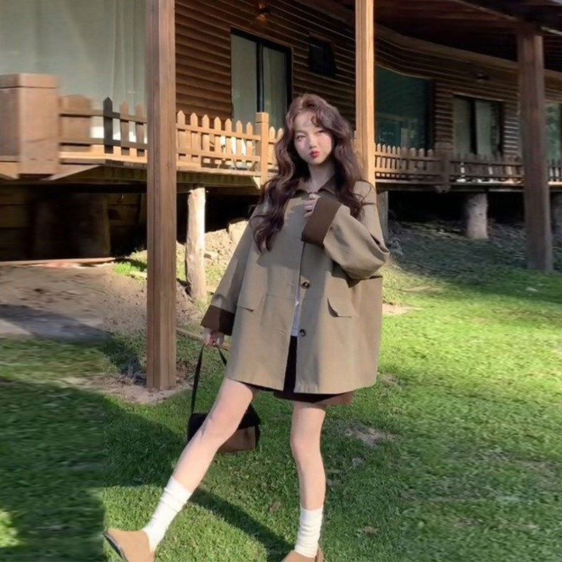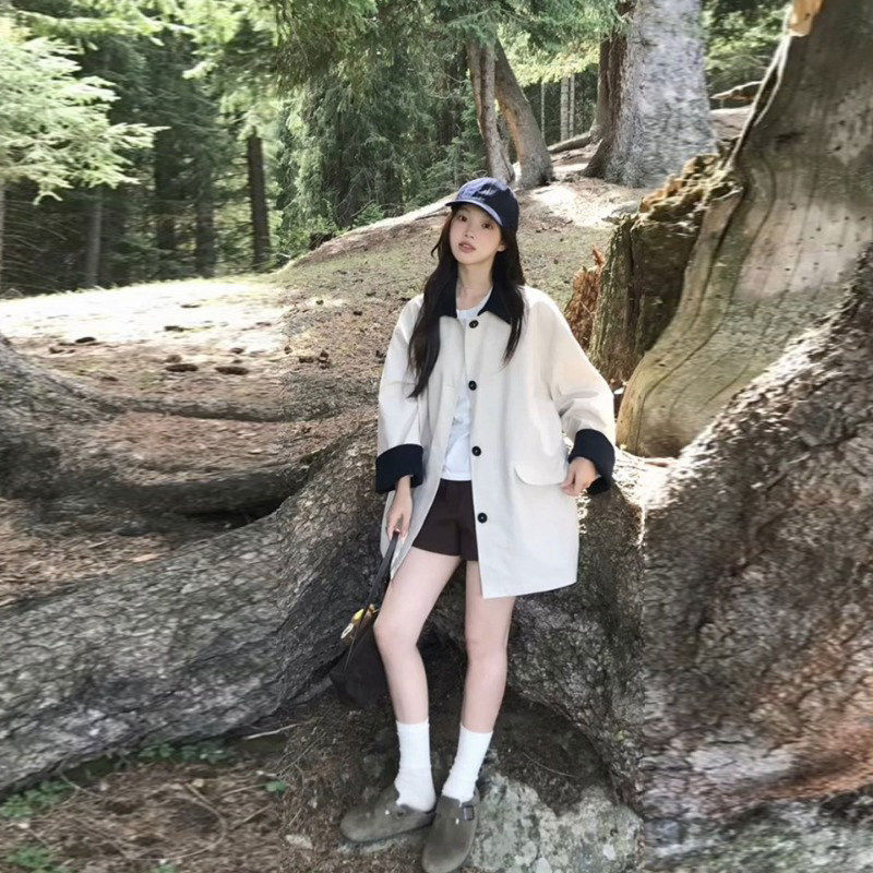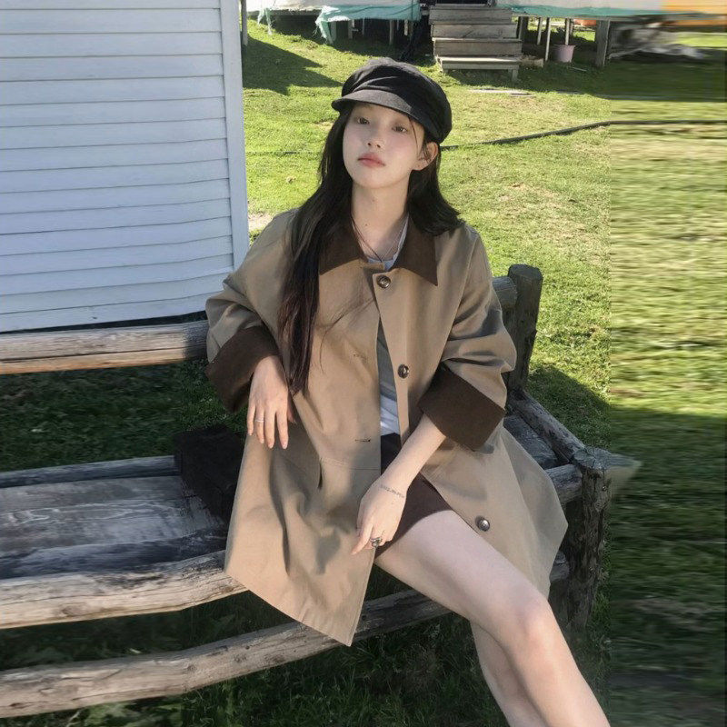 撞色翻领风衣外套女装2026春秋季新款高级感超好看韩系中长款大衣