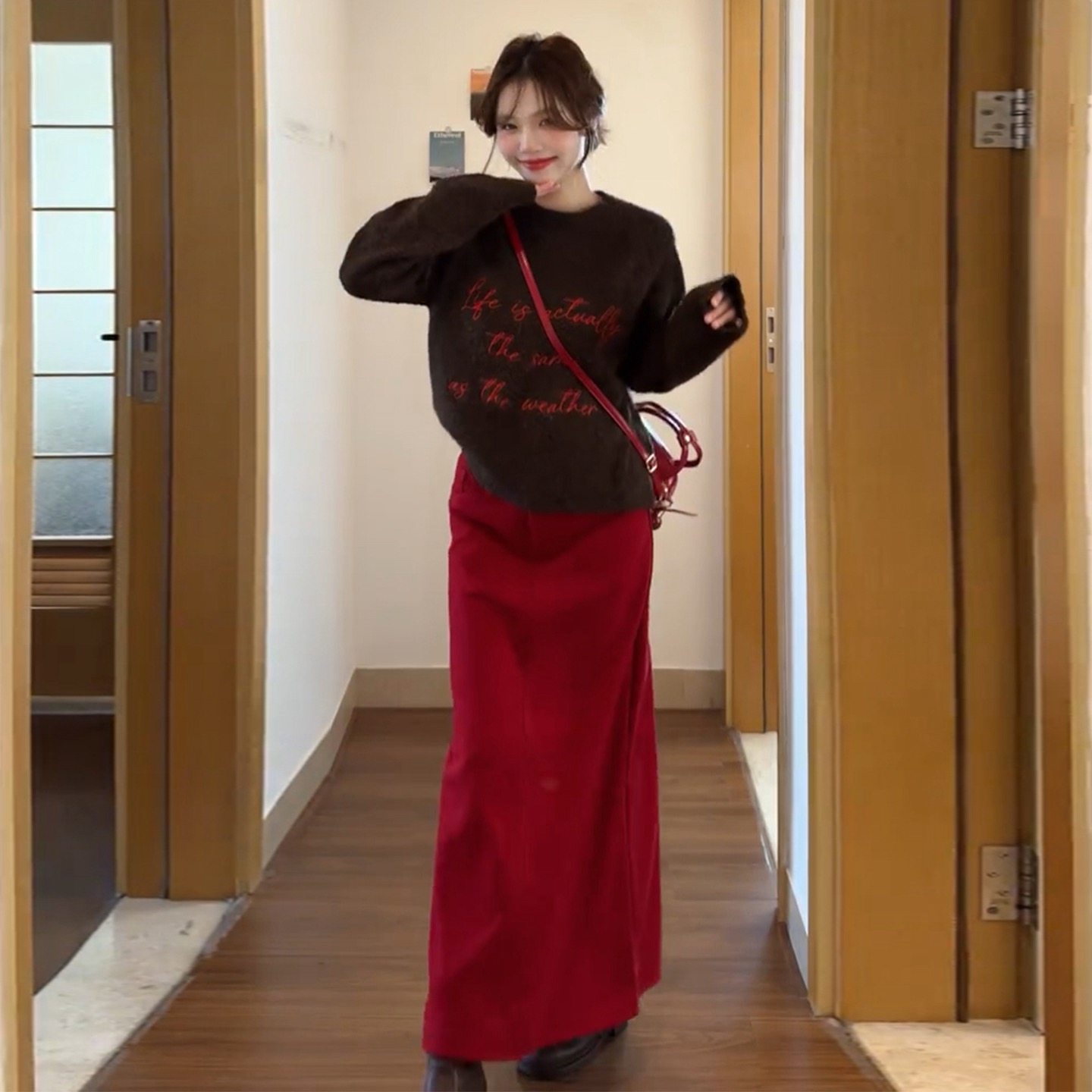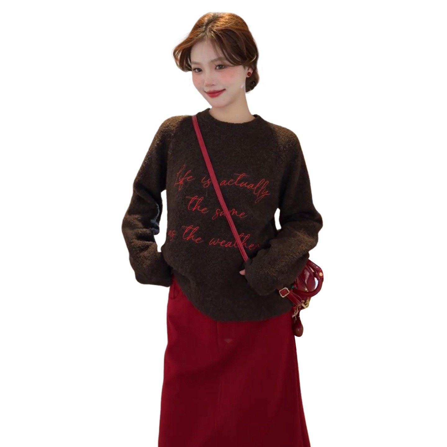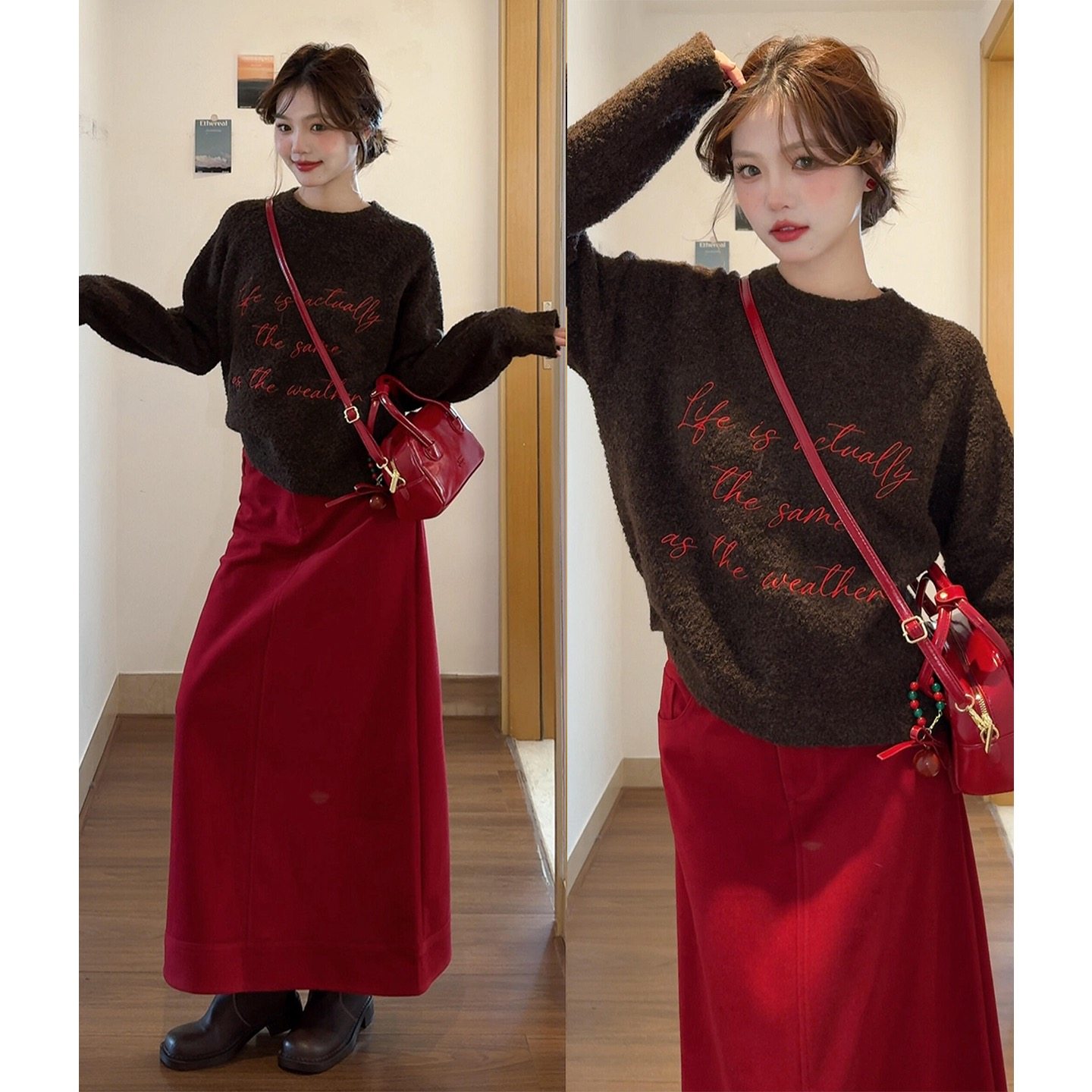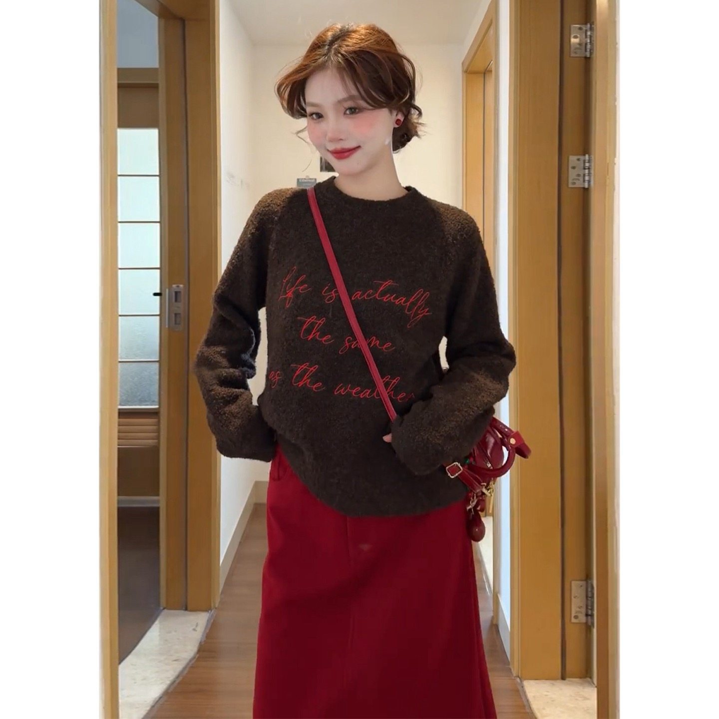 新年穿搭咖色毛衣连衣裙子女2026冬季新款巨好看冬装一整套装长裙