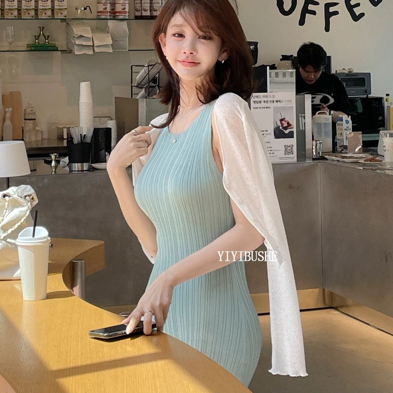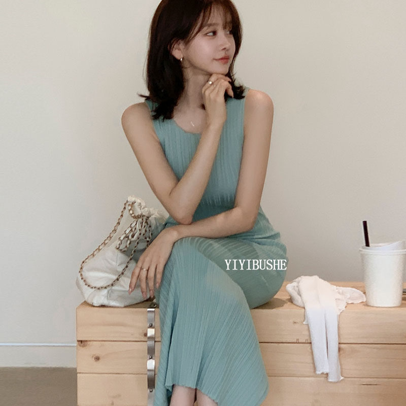 韩国代购正品LL293轻奢高级感~优雅女人味到脚踝长款无袖连衣裙le