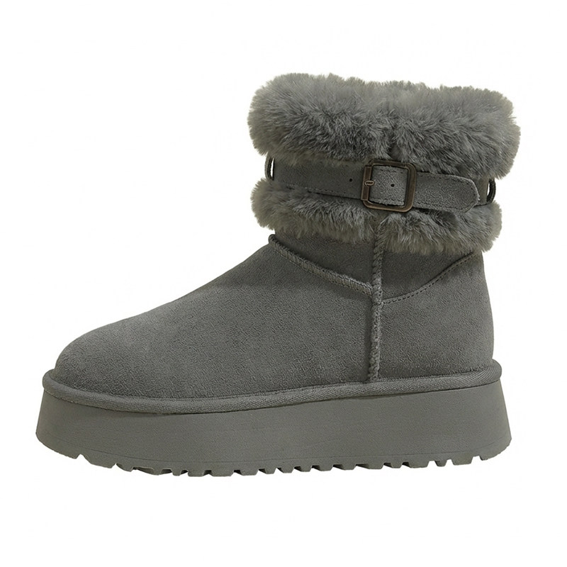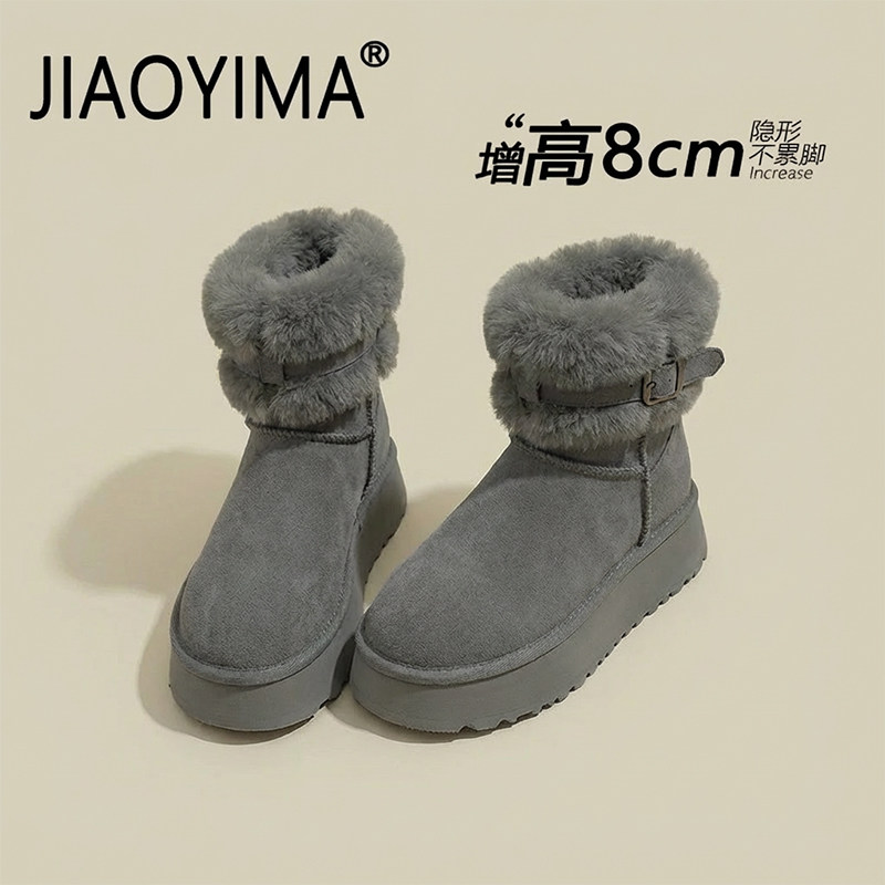 灰色内增高雪地靴女款2025新款冬季加厚保暖短靴厚底加绒东北棉鞋