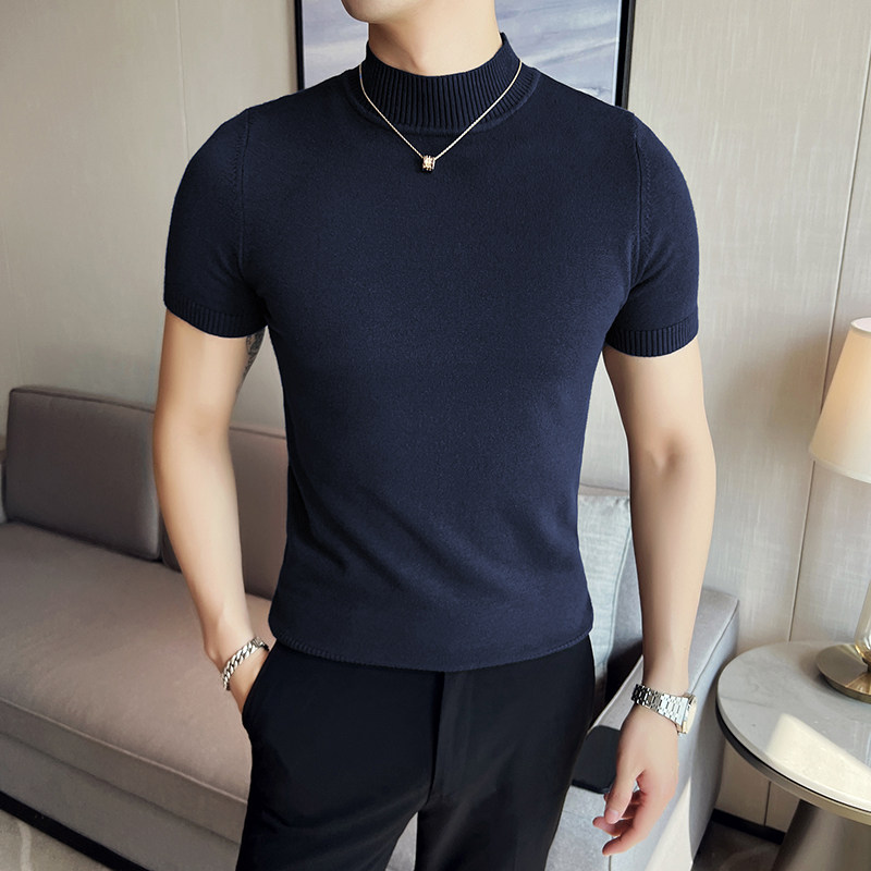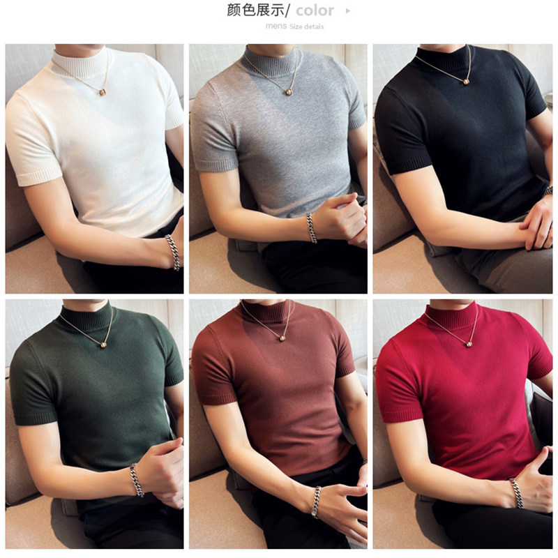 男士毛衣半高领修身秋冬季短袖t恤男款高级感紧身中领针织打底衫