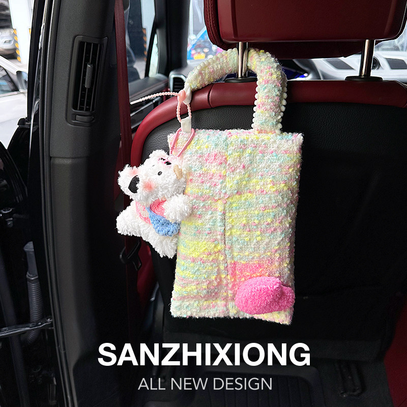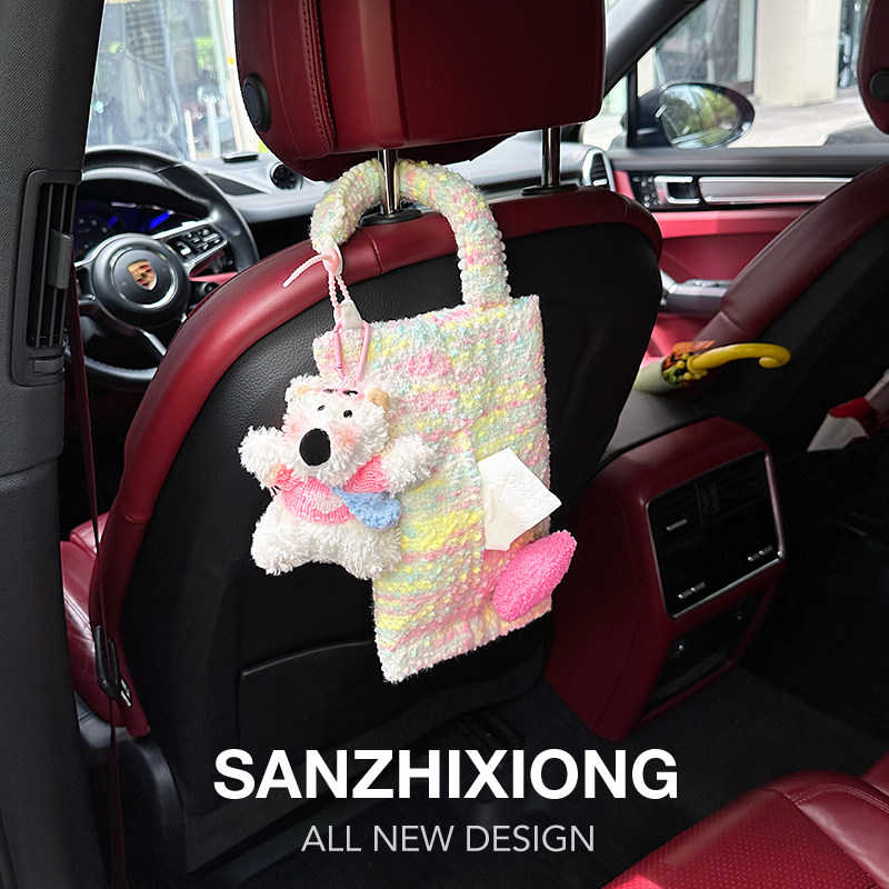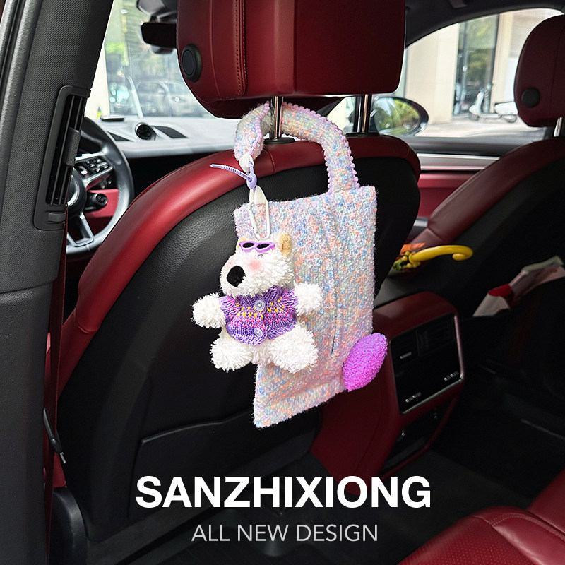 汽车纸巾包挂袋可爱潦草狗车载抽纸盒车内用座椅纸巾收纳袋挂式女