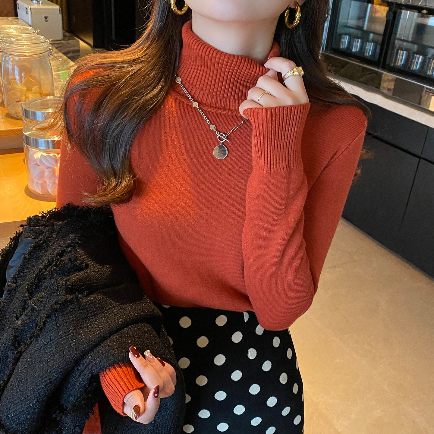 龙妹家白色高领加绒打底衫女装内搭毛衣2026新款冬装好看针织上衣