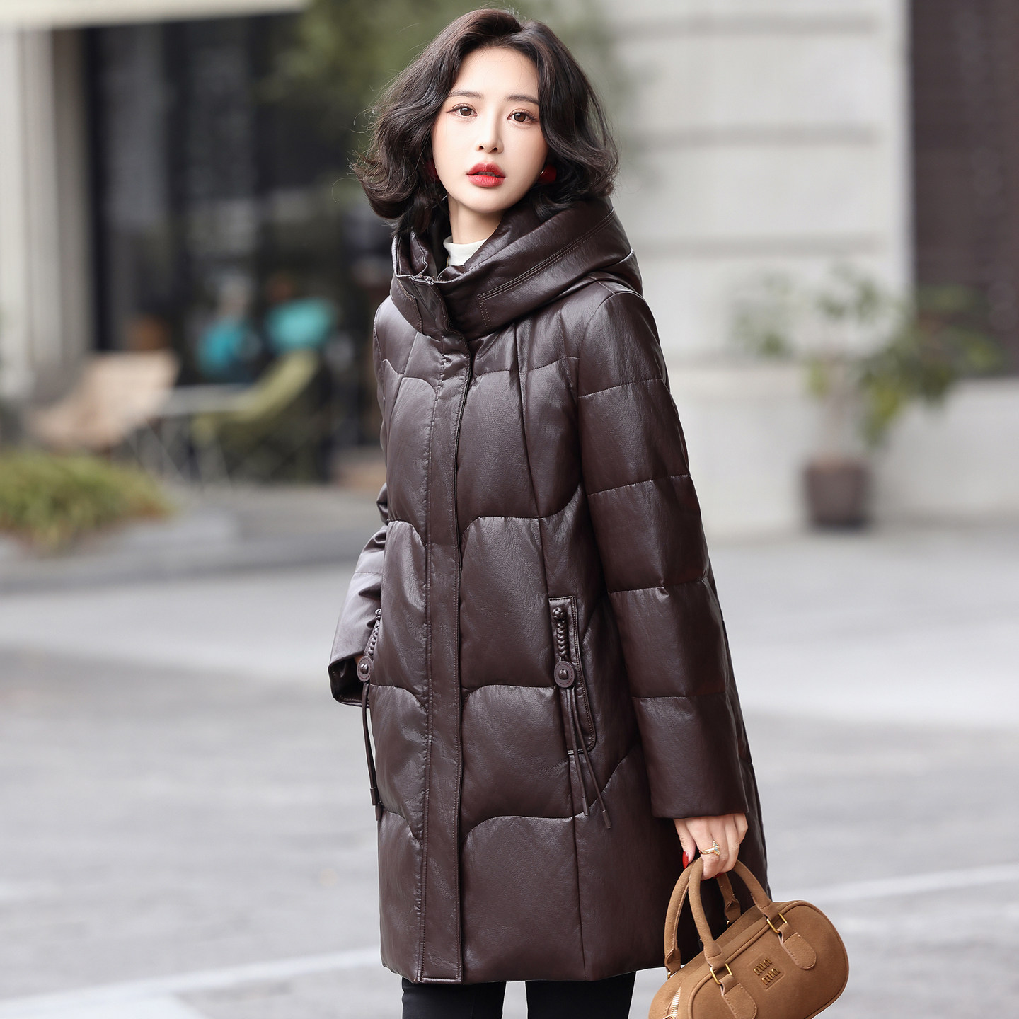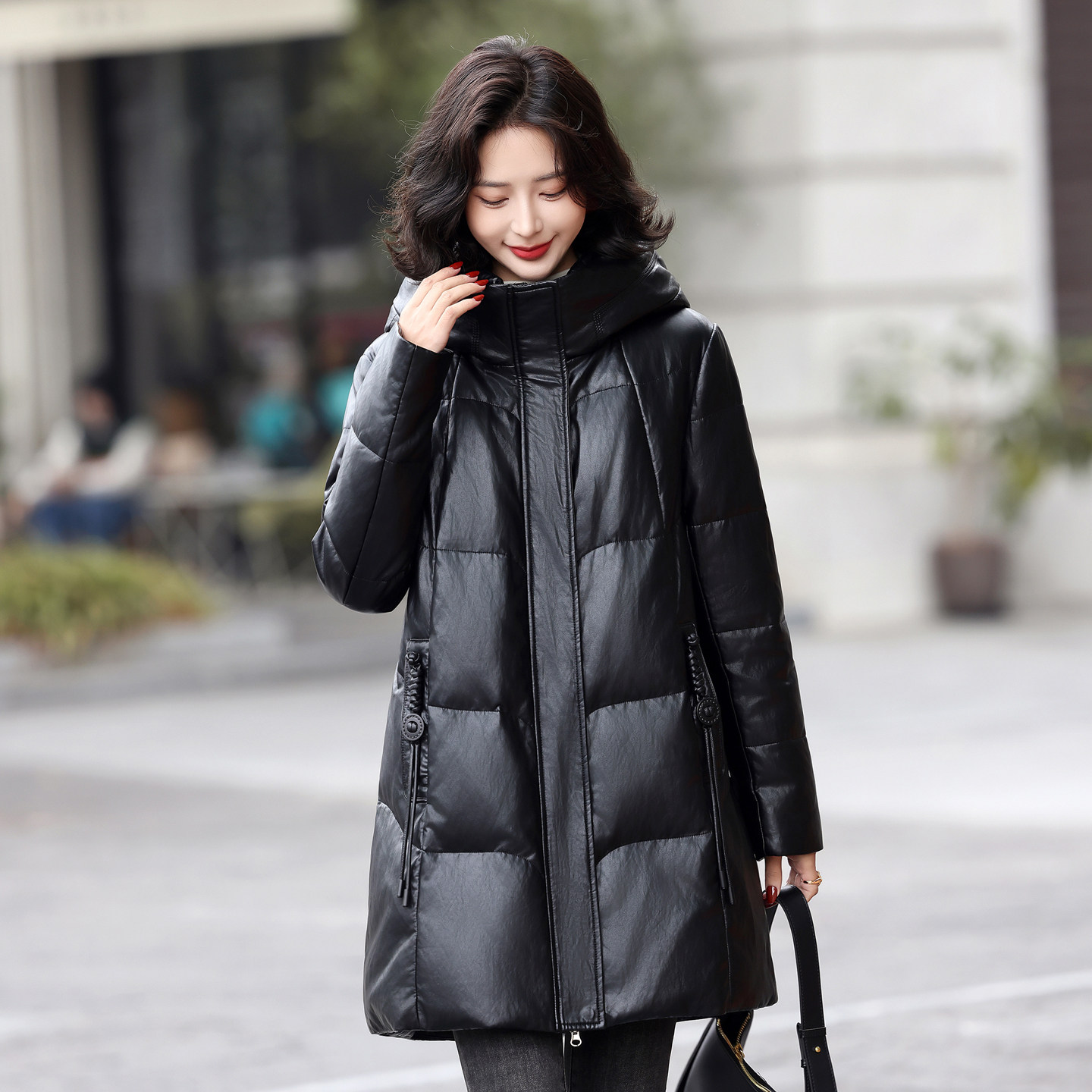 皮羽绒服女中长款冬季新款抗寒保暖连帽防真皮绵羊皮女式皮衣外套