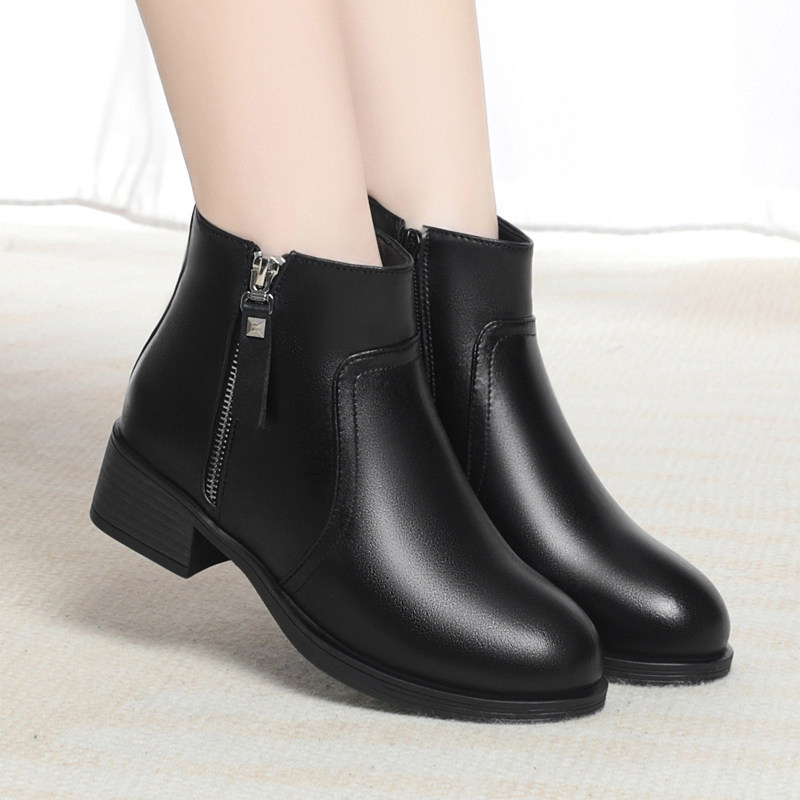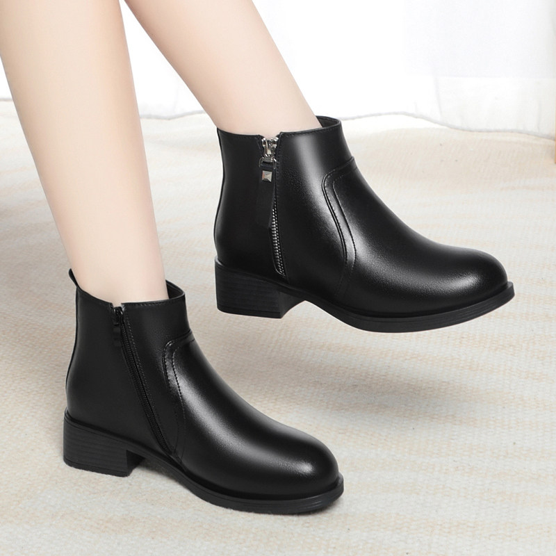 冬季新款真皮女棉鞋休闲平跟加绒短靴软底马丁靴女鞋羊毛棉皮鞋子